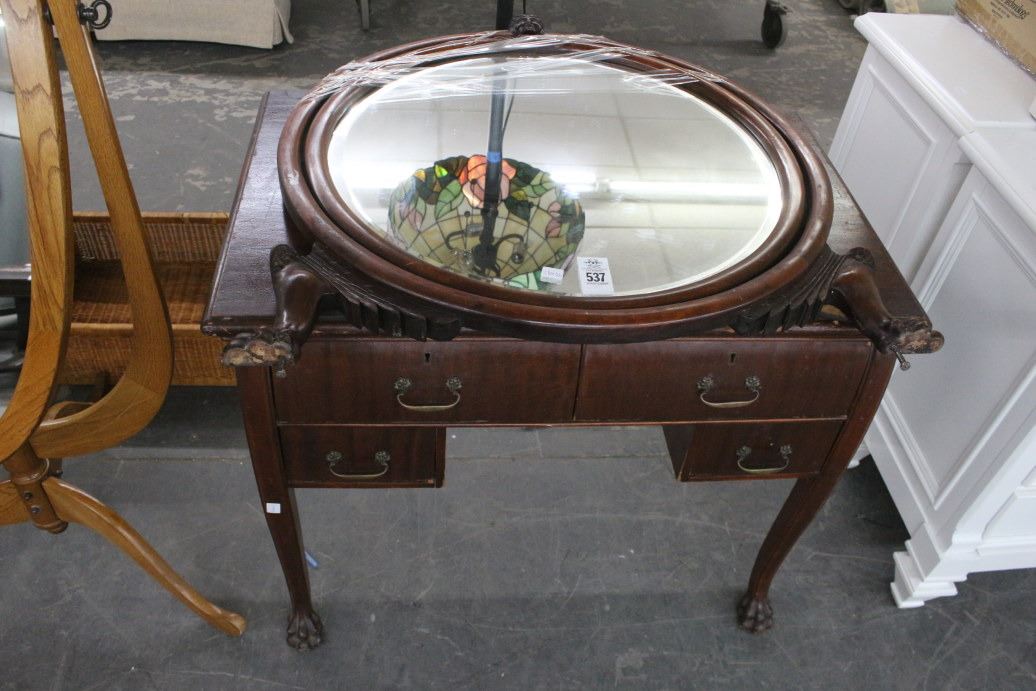 Ornate Floral Carved Claw Foot Vanity Desk w/Mirror