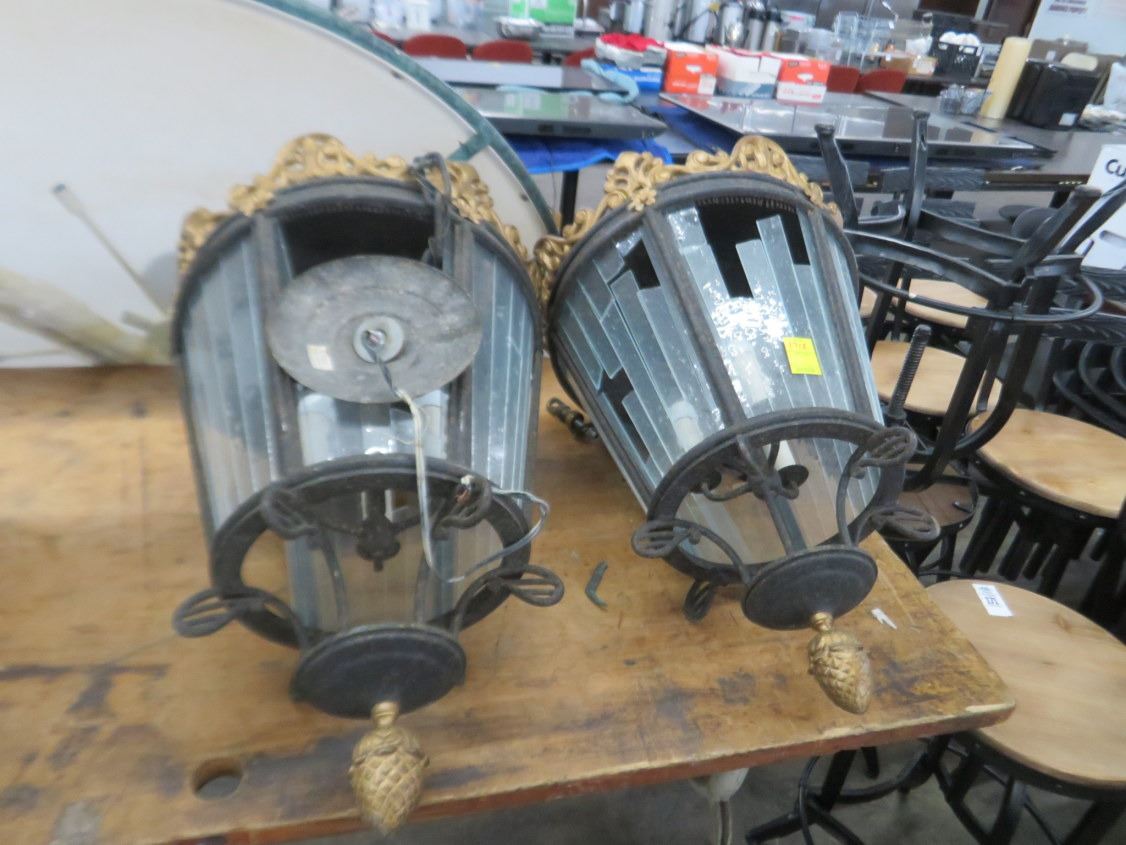 Ornate Hanging Lamps (2) Panels Damaged