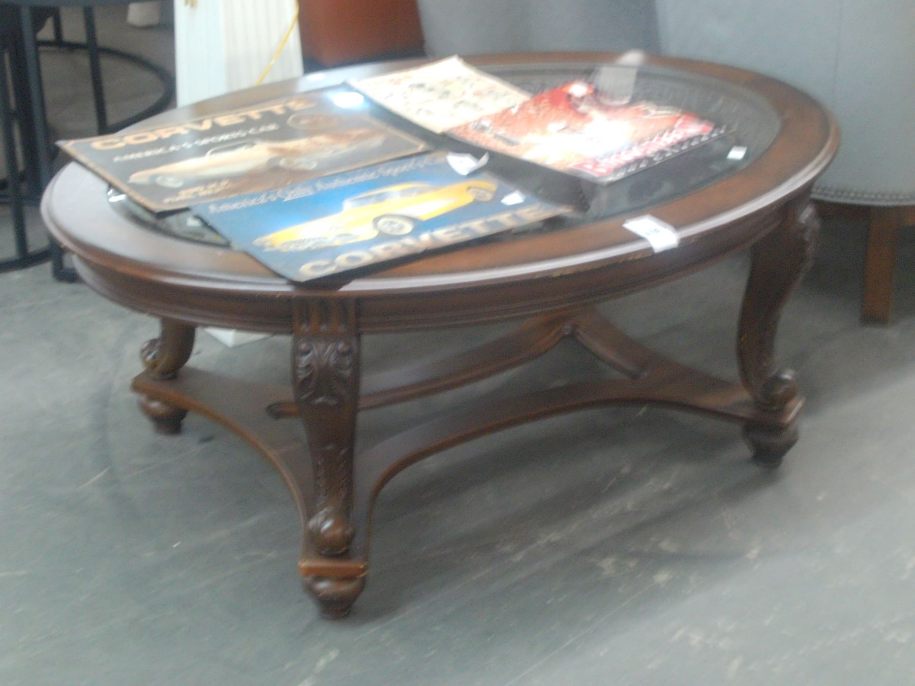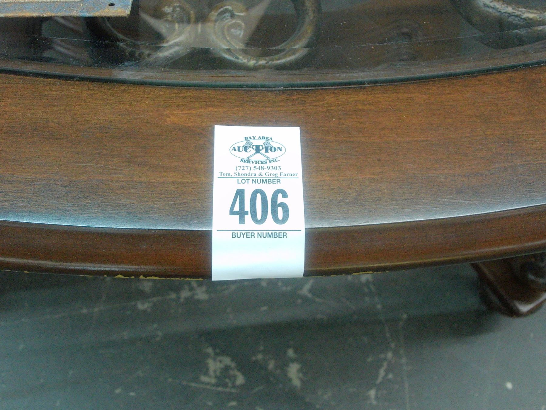 Ornate Iron Inset Oval Glasstop w/Coffee Table