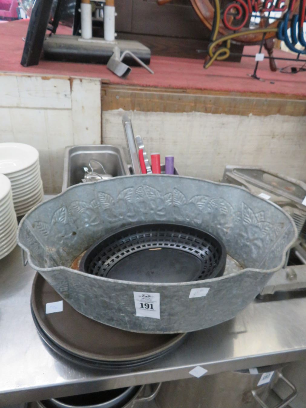 Ornate Metal Bucket, Serving Trays, Insert Pans w/Supplies