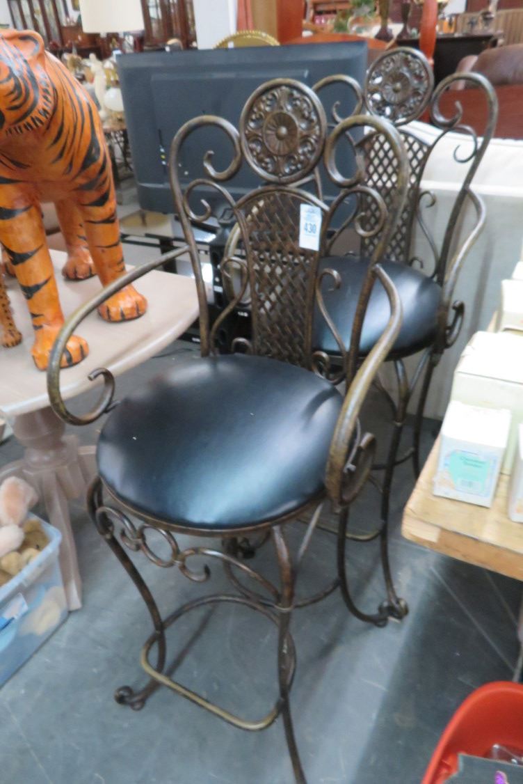 Ornate Padded Barstools (Pair)