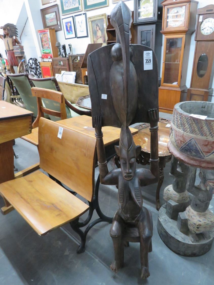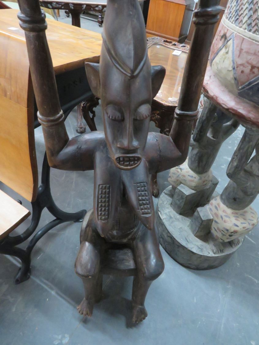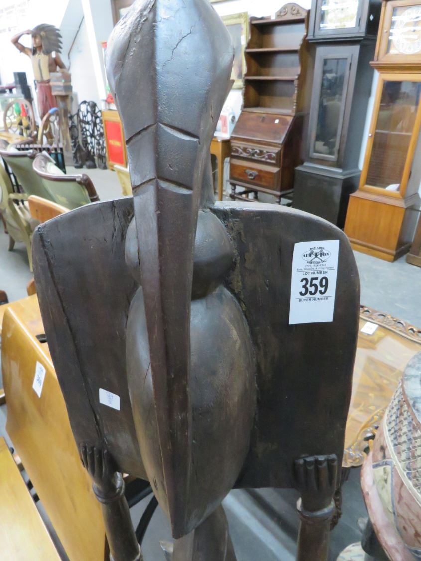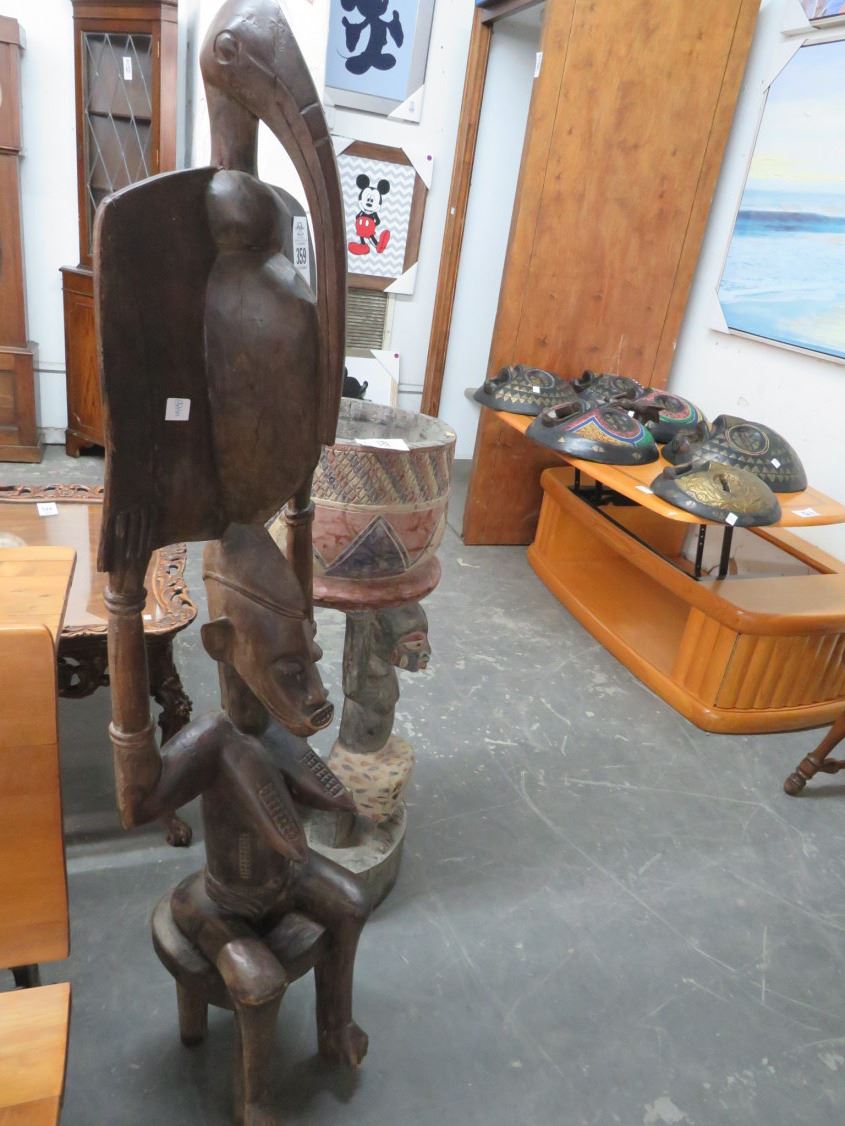Ornately Carved African Statuary of Woman Holding Bird - Approx. 50"