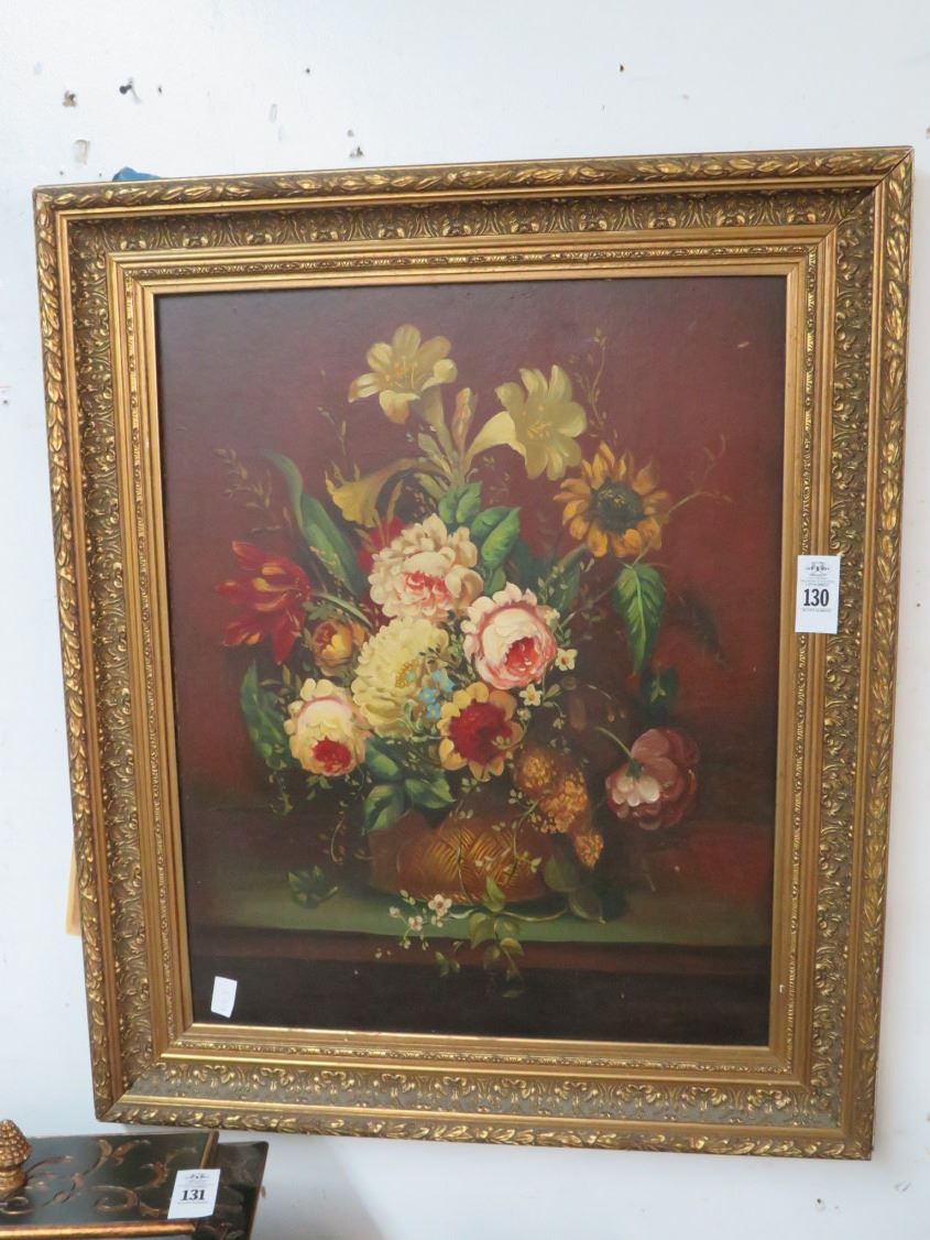 Ornately Framed Floral Oil On Board - 36 x 40