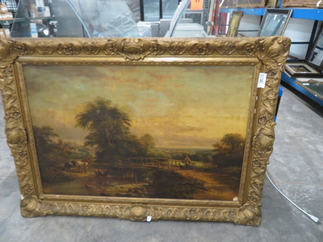 Ornately Framed Oil On Canvas "On the Farm" - 40 x 48