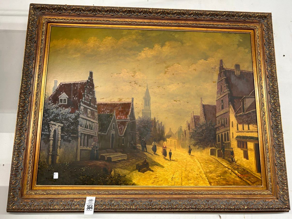 Ornately Framed Oil On Canvas Village Street Scene - 40 X 48