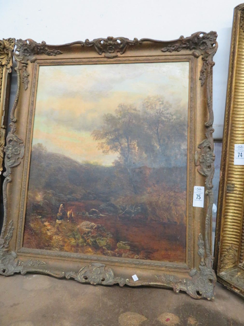 Ornately Framed Oil On Canvas "Vintage River Fishing Date" - 24 X 30
