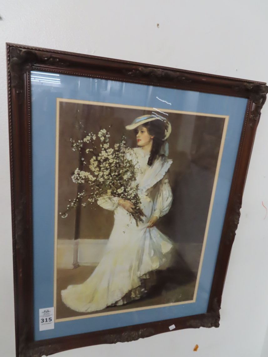 Ornately Framed Picture of Woman w/Flowers 25" x 30"