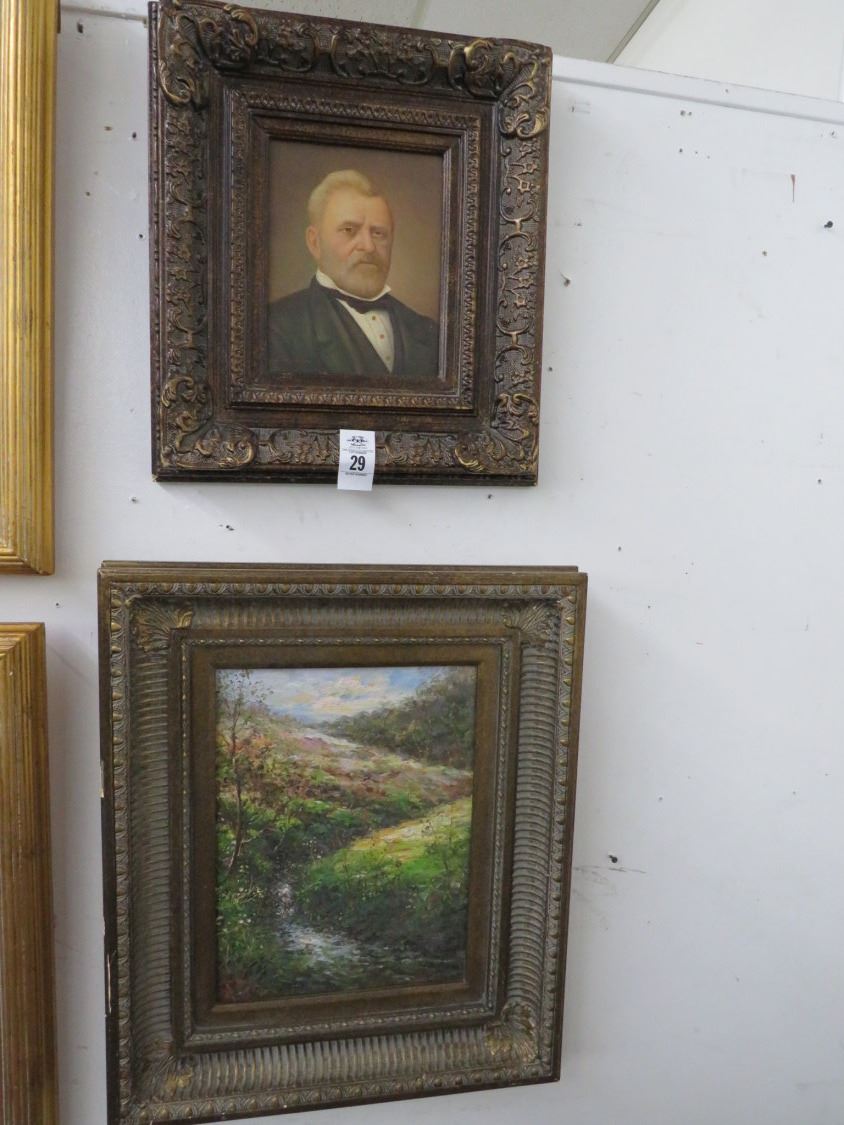 Ornately Framed Portrait and Country Scene - 2