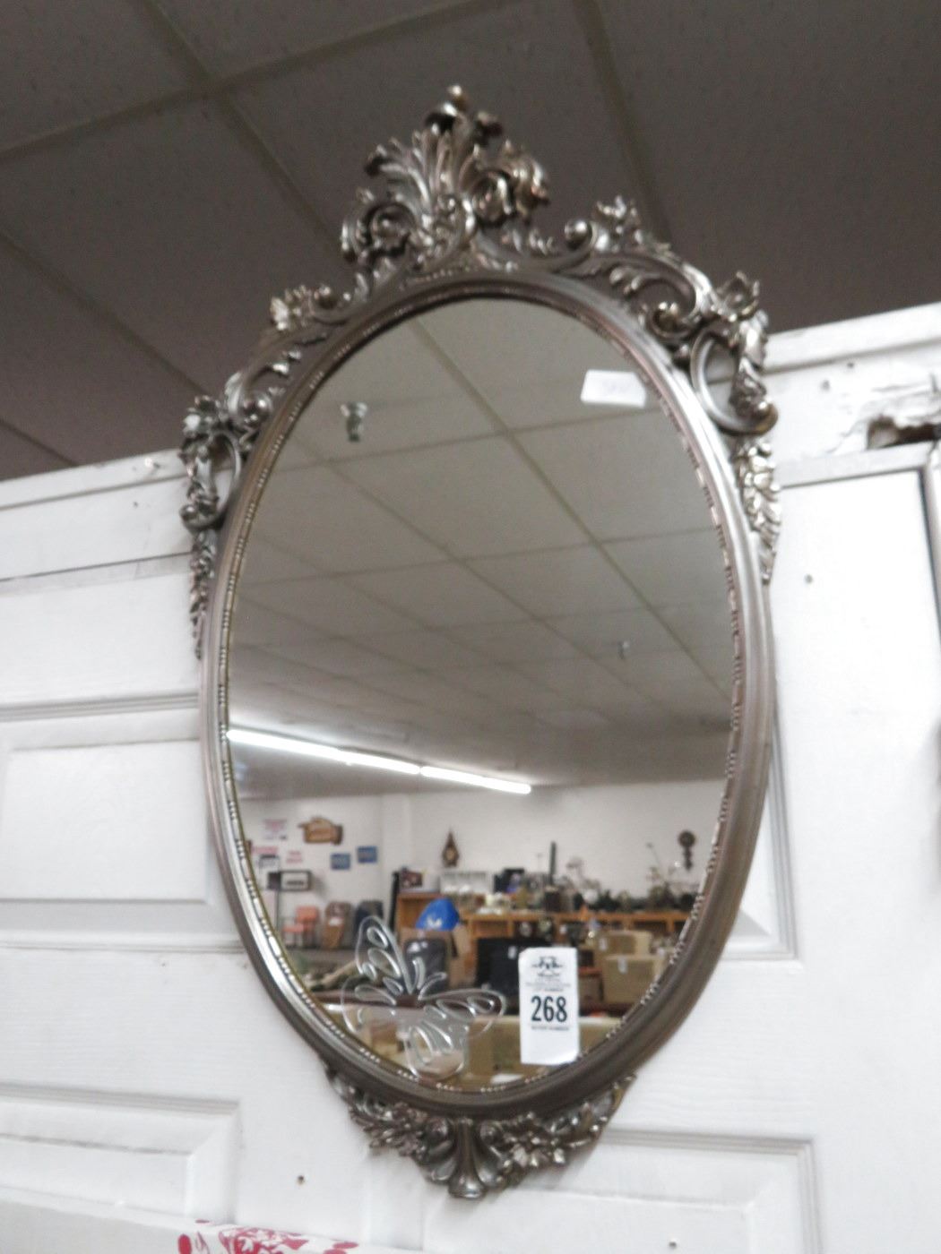Oval Ornate Silver Frame Butterfly Mirror - No Shipping