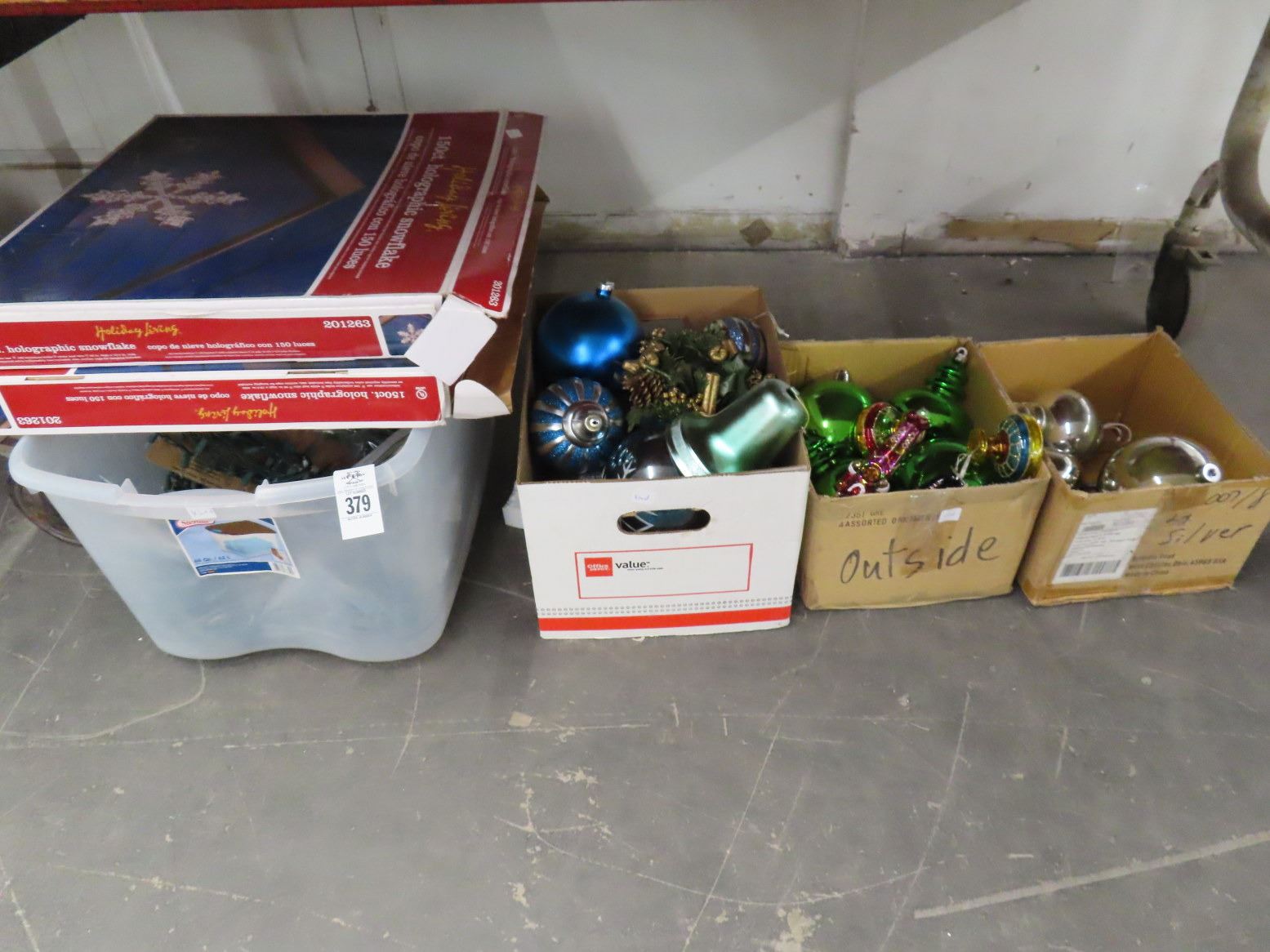 Oversized Christmas Ornament, Lighted Snow Flakes & String Lights