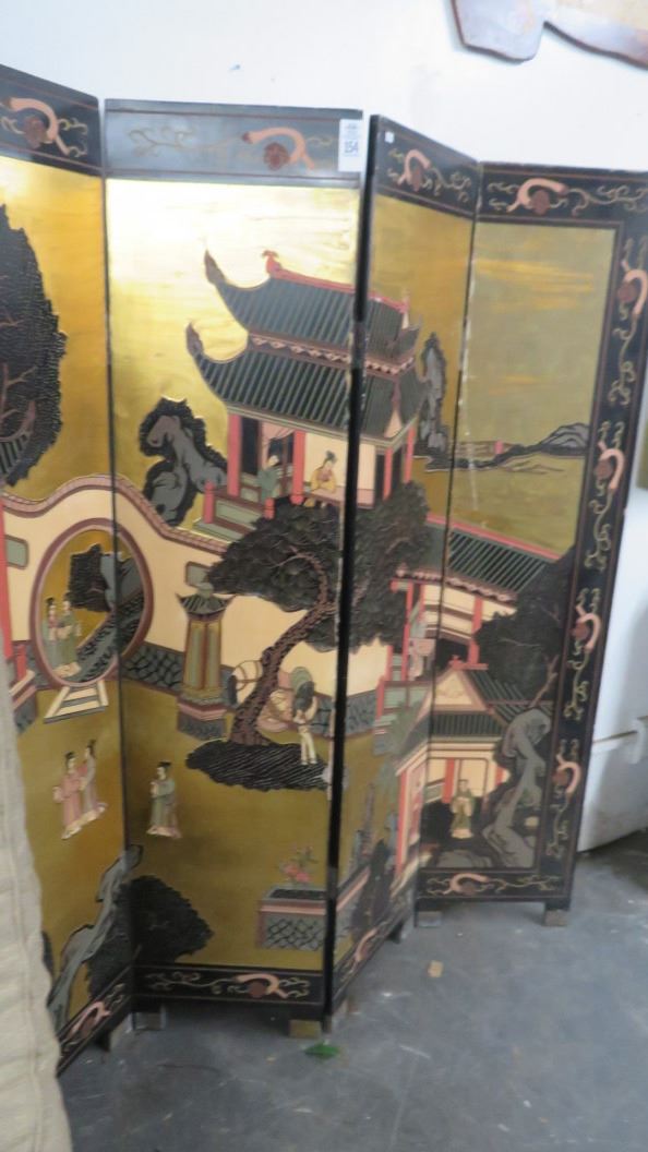 Painted Asian Motif 4 Panel Privacy Screen