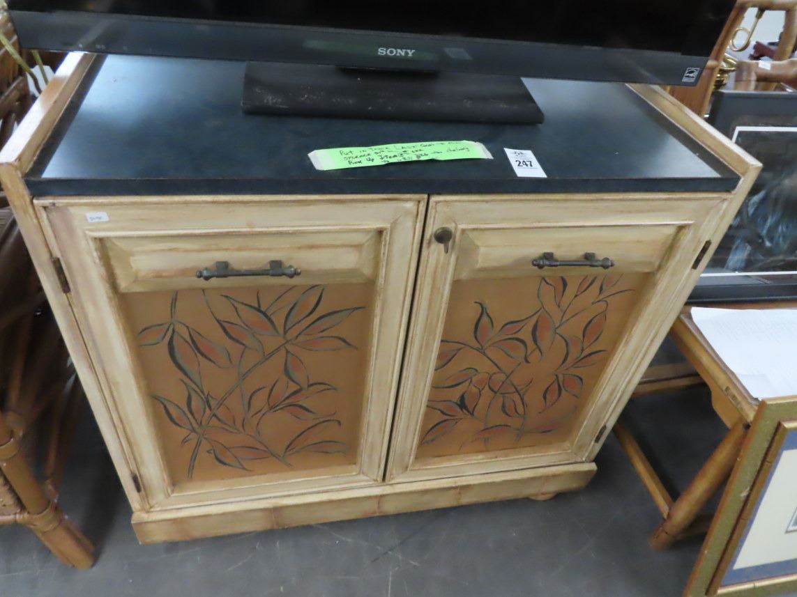 Painted Leaf Motif Locking Cabinet