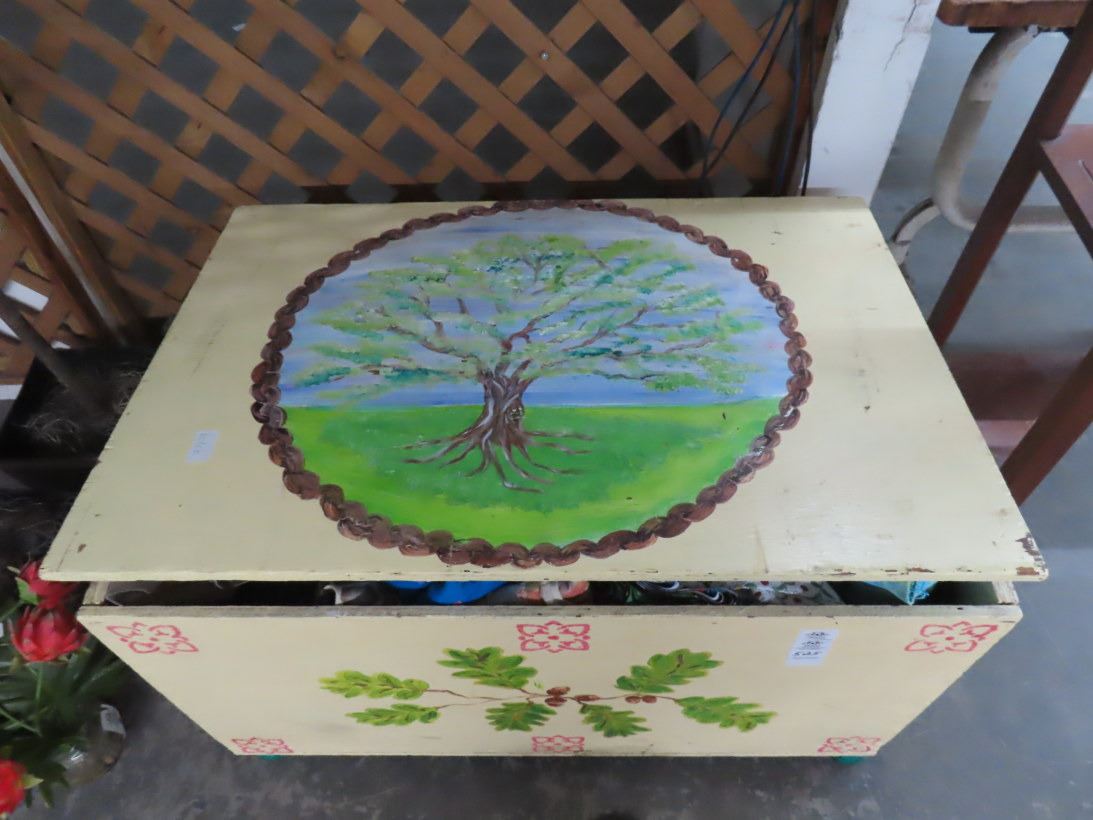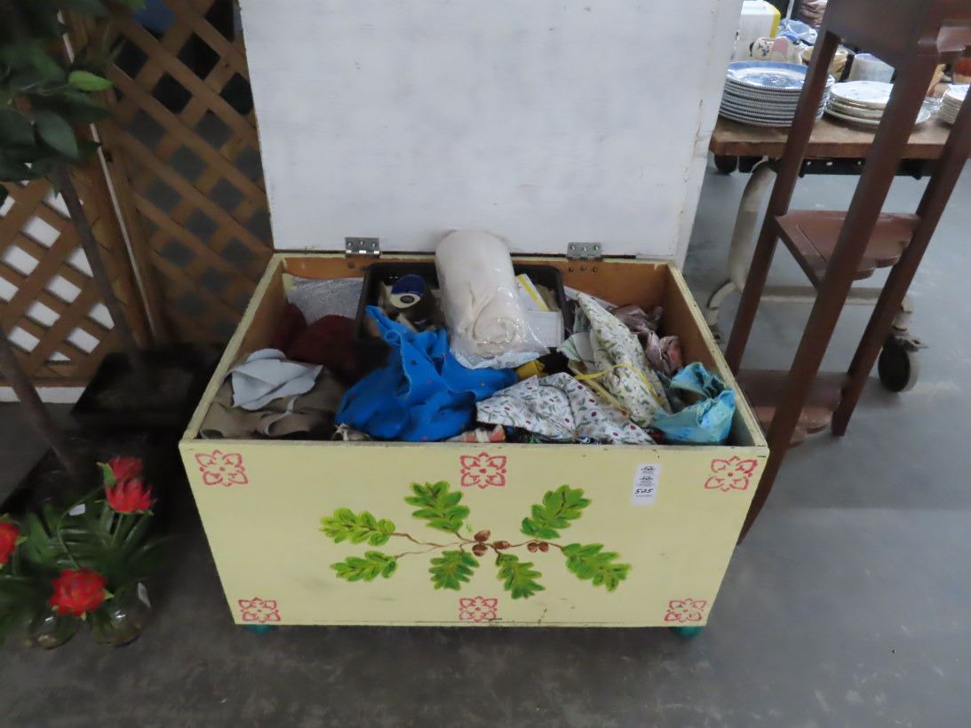 Painted Wooden Cabinet w/Asst. Linens/Sewing Supplies