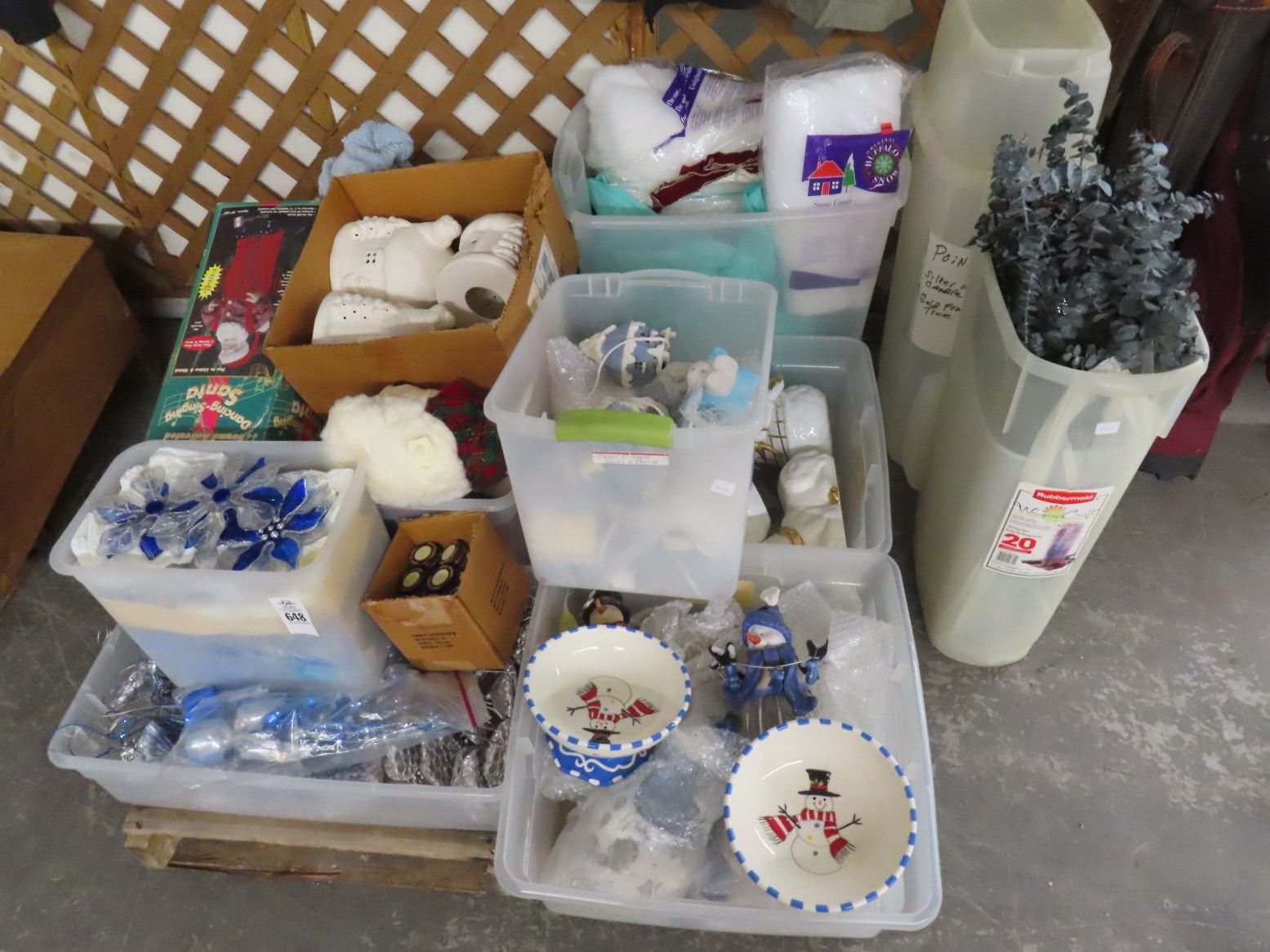 Pallet of Asst. Christmas Floral, Bowls, Home Décor, Pottery, Snowman and More