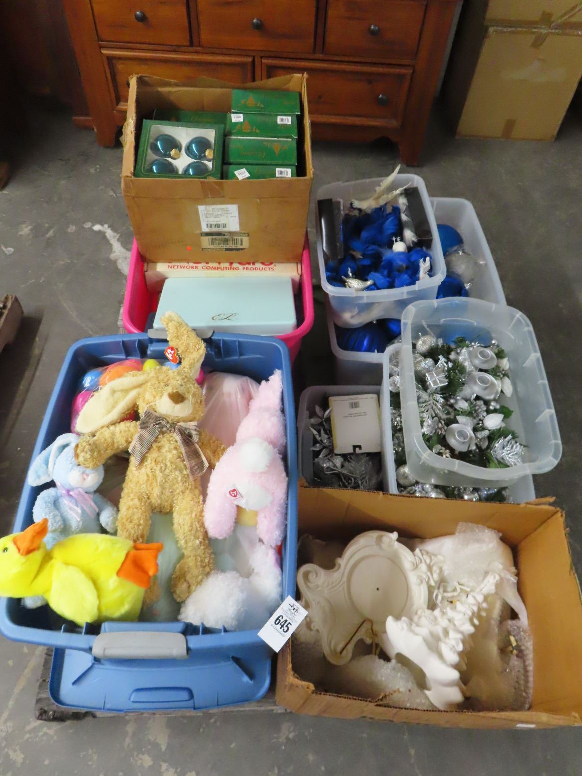 Pallet of Christmas Pottery, Floral Décor, Dolls, Ornaments, Large TY Beannie Babies