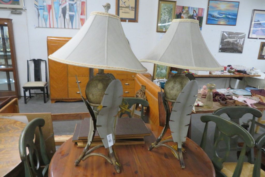 Palm Leaf Motif Table Lamps (Pair)