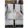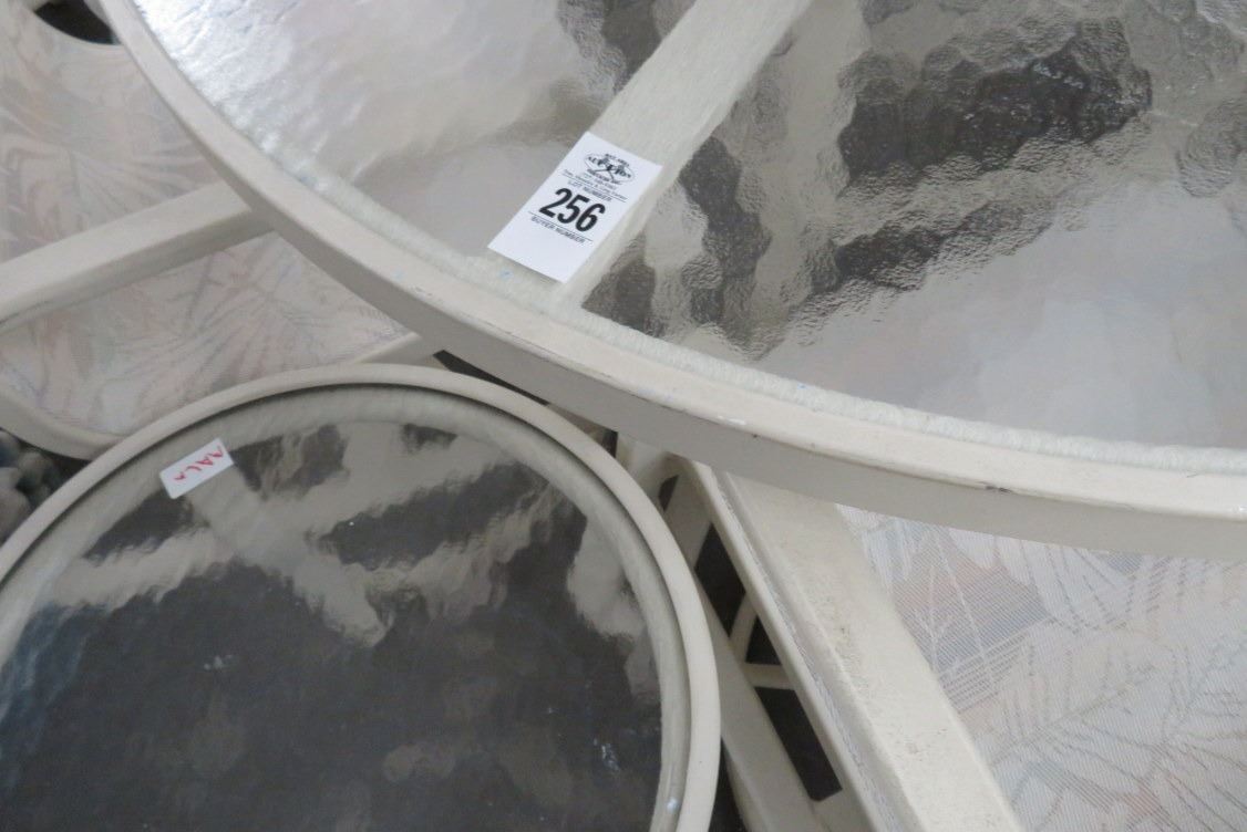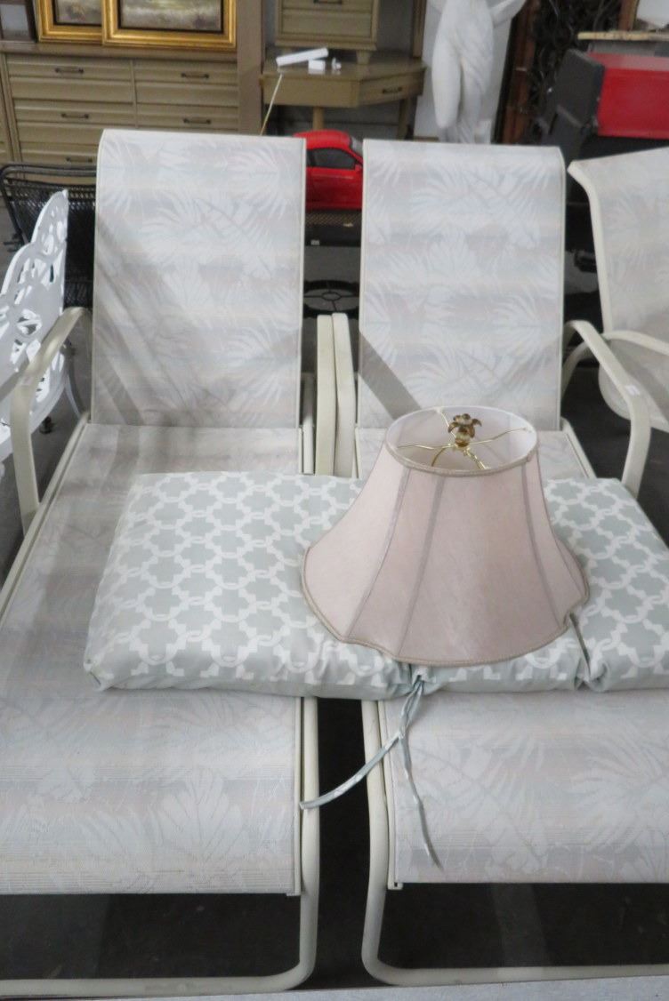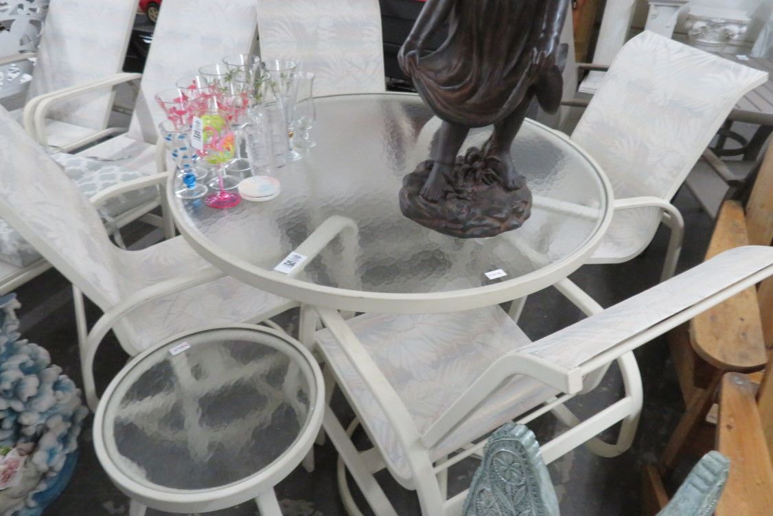 Palm Motif Lounge Chairs w/Side Table, Patio Table & 4 White Chairs