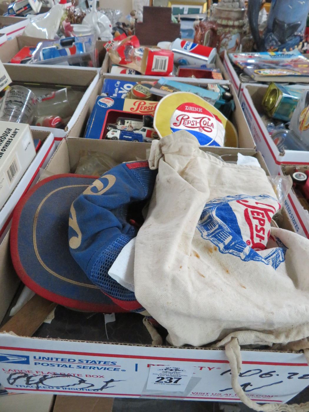 Pepsi Hat, Die Cast Bottles, Glasses, Collectibles - 3 Boxes