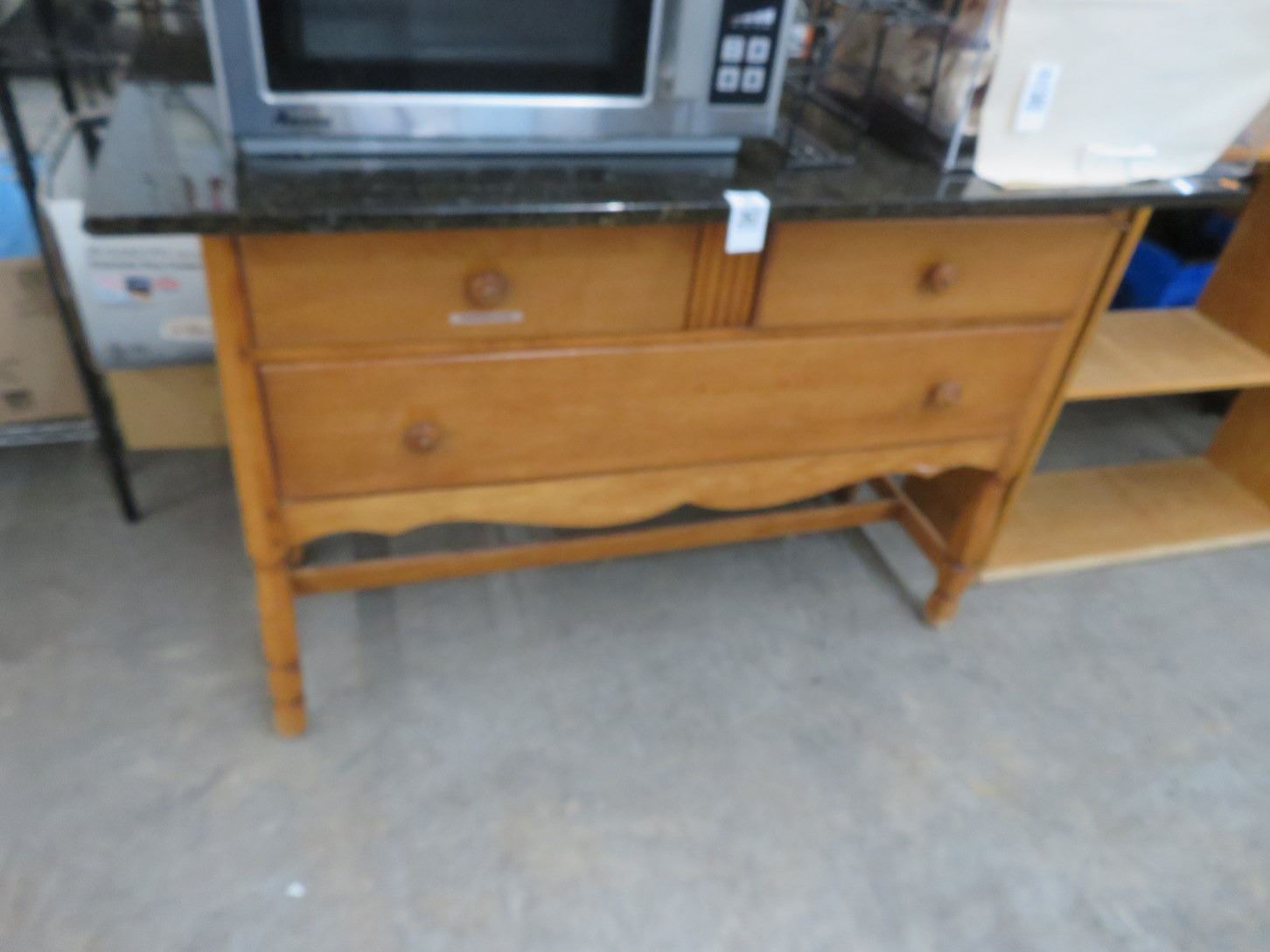 Pine 3 Drawer Hall Table w/Granite Top