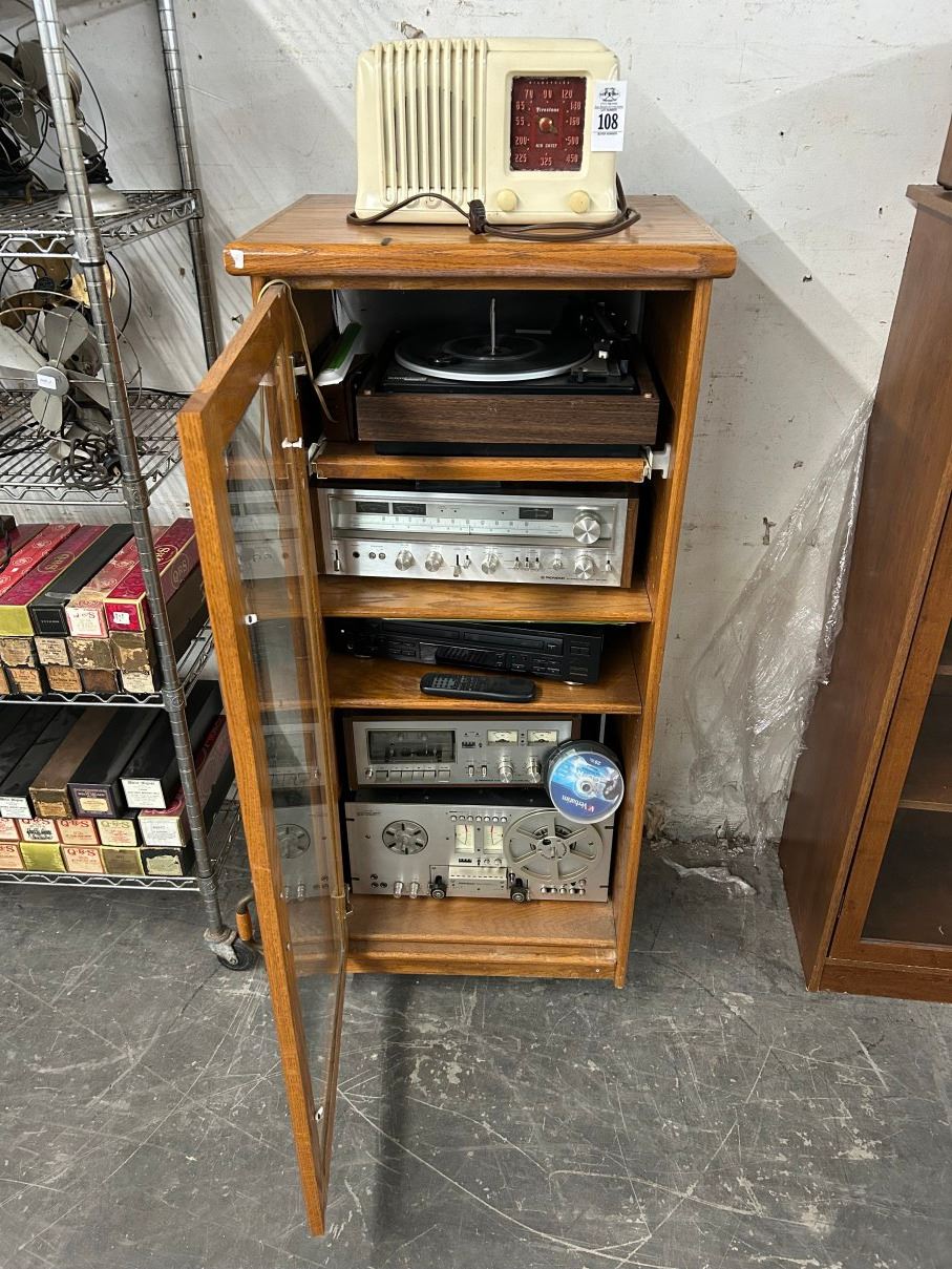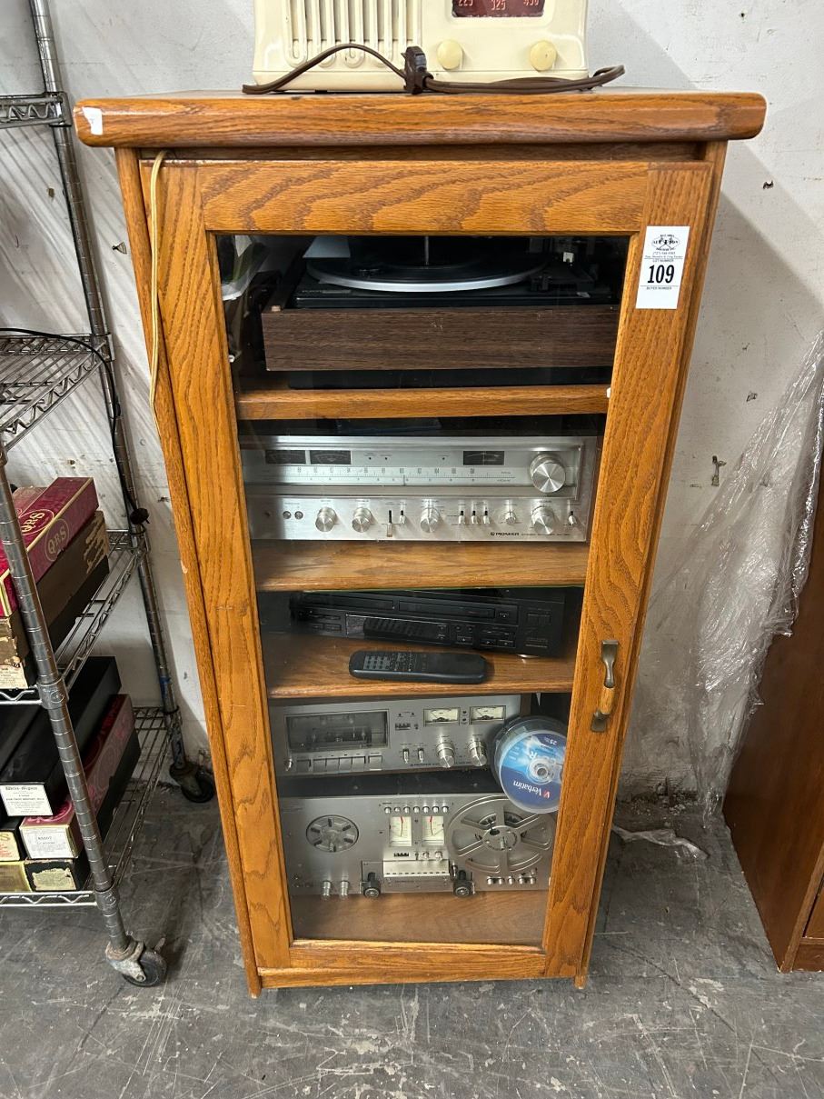 Pioneer Reel To Reel, Tape Player w/Receiver, Turntable In Glass Door Cabinet