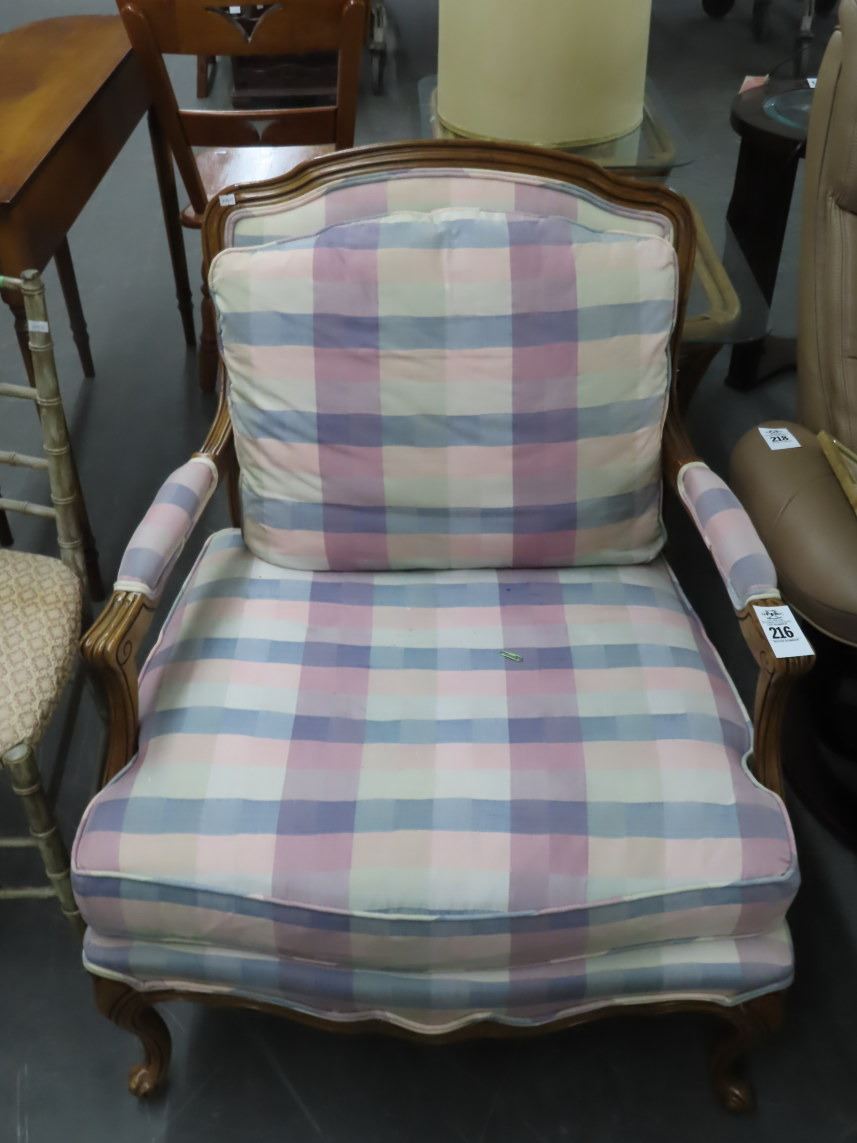 Plaid Mahogany Trim Armchair