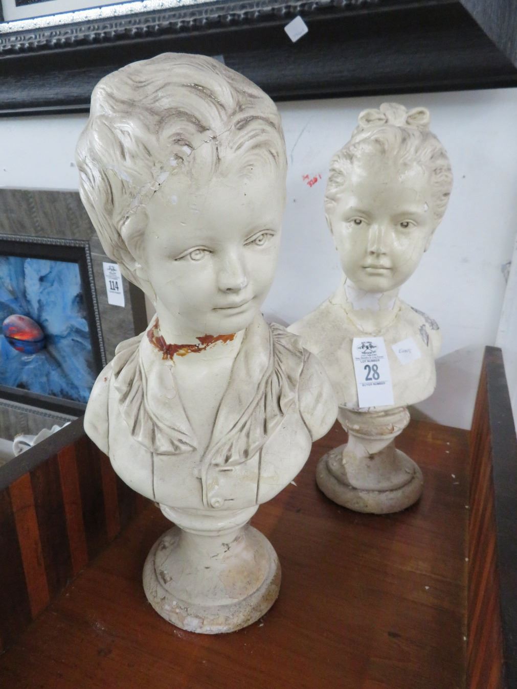 Plaster Busts of Boy and Girl - (Damaged)