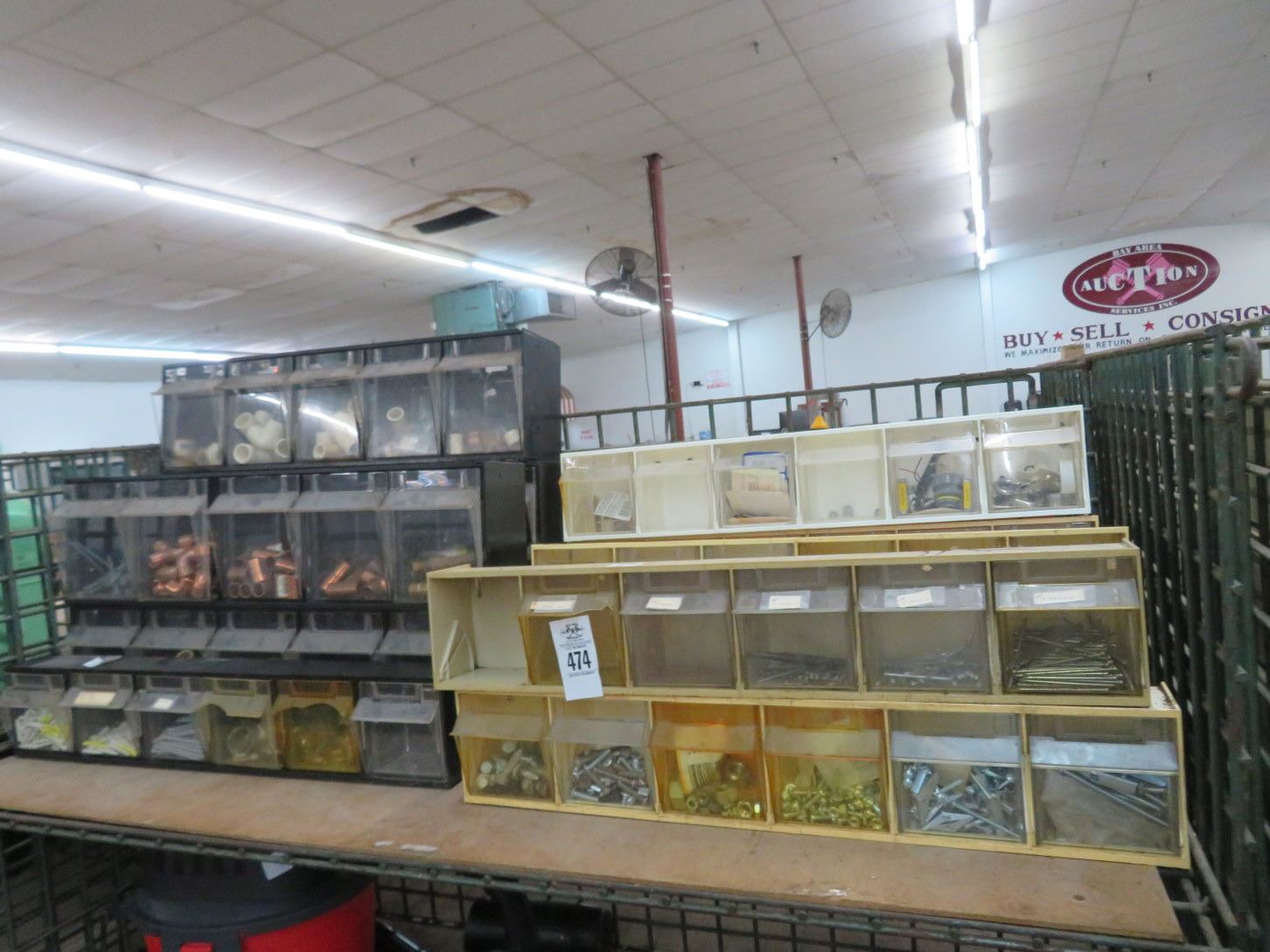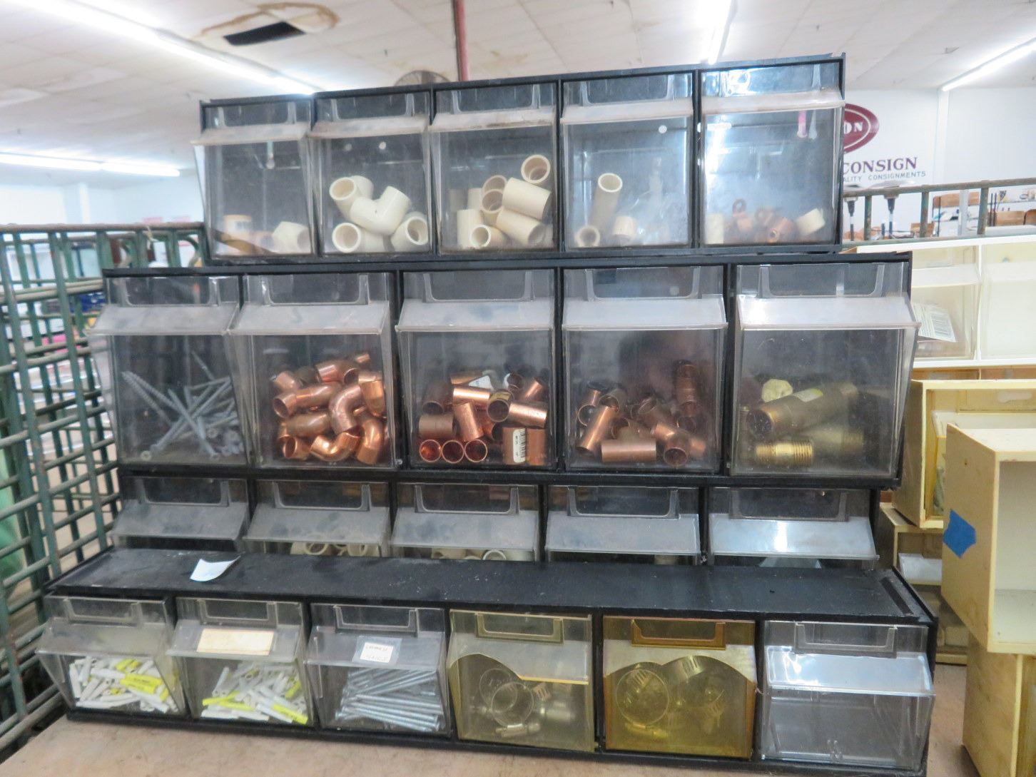 Plastic Hardware Bins w/Copper Fittings and Asst. Hardware