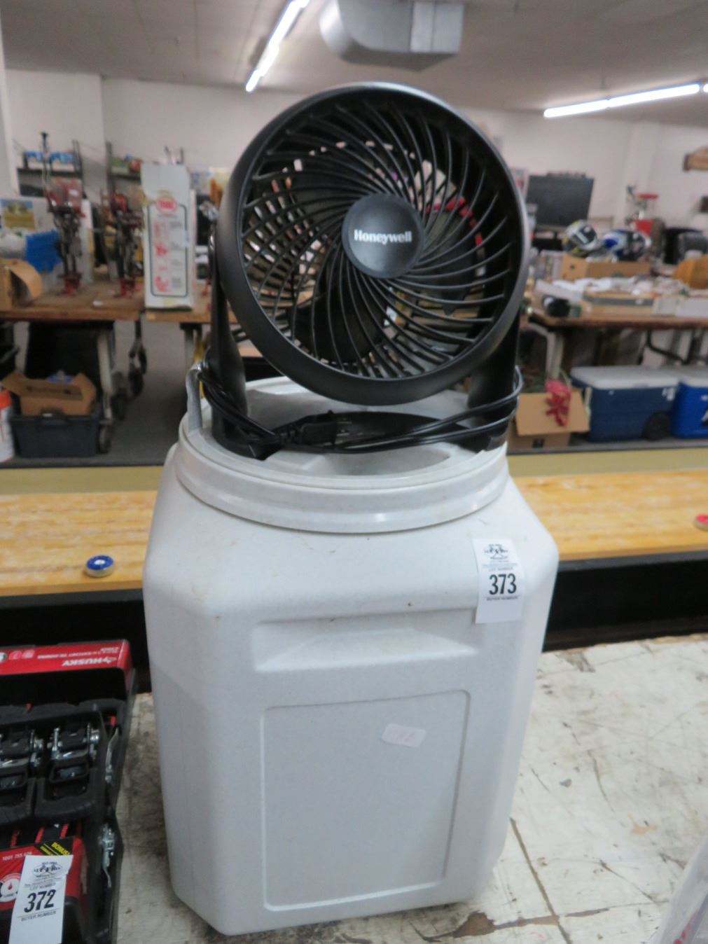 Plastic Lidded Container and Honeywell Desk Fan