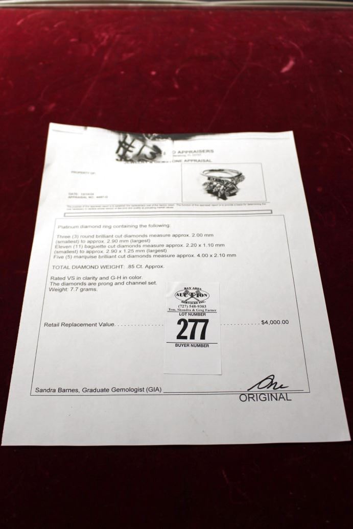 Platinum Diamond Ring w/3 Round Cut Diamonds and 11 Baguette Diamonds and 5