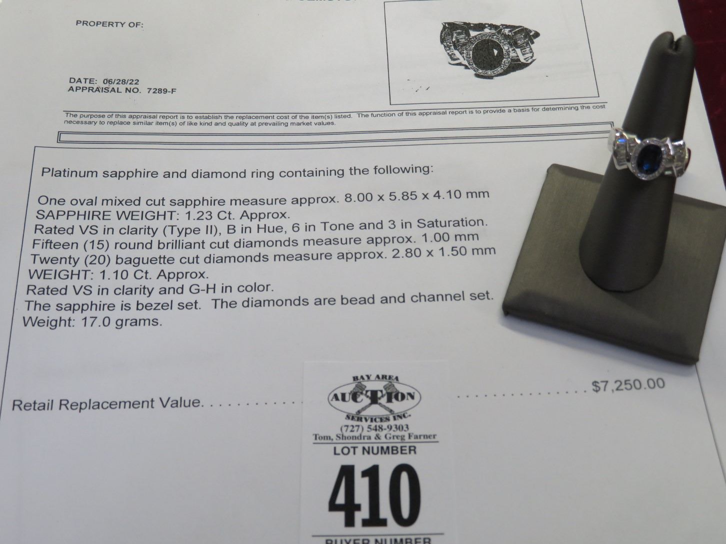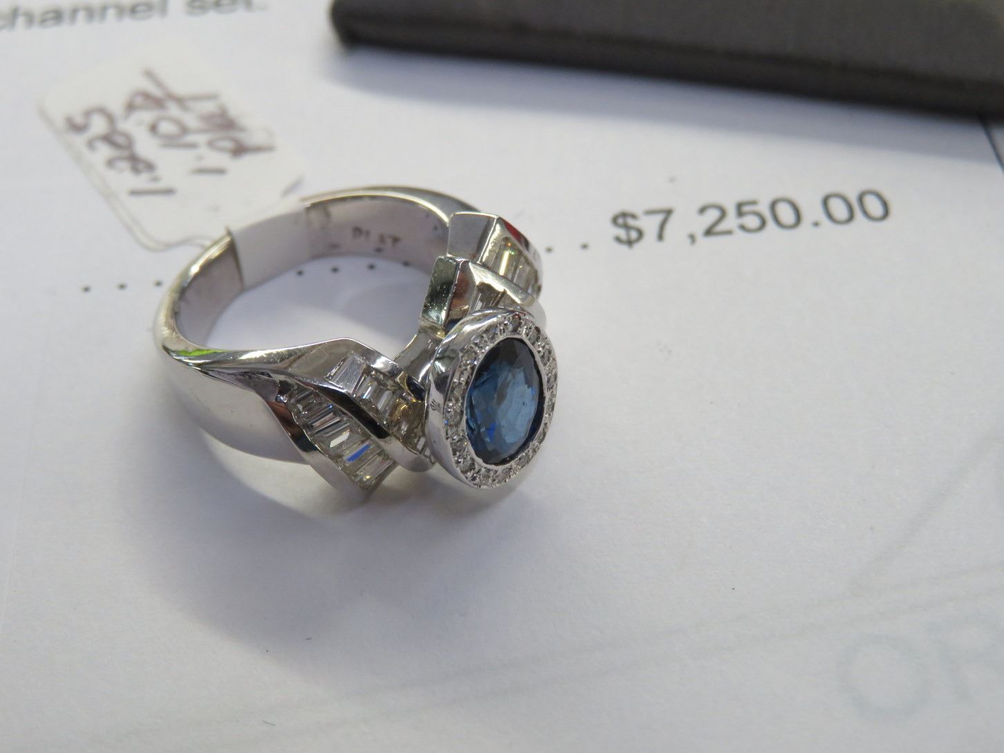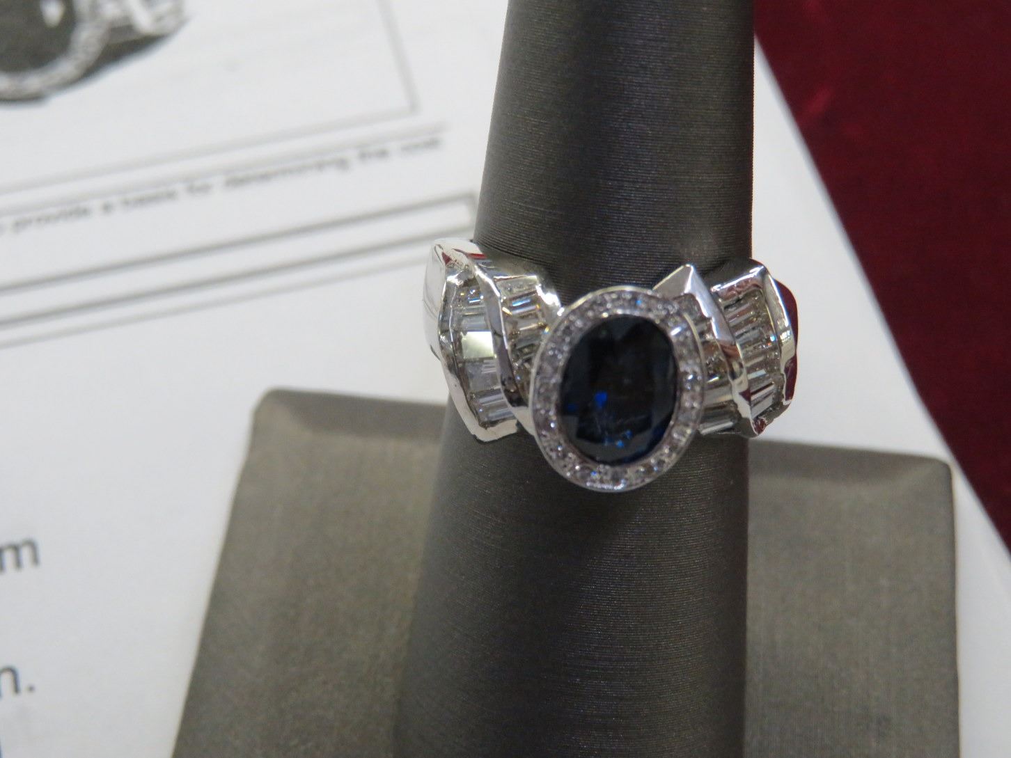 15 Round Cut Diamonds w/20 Baguette Cut Diamonds 17.0g. Sapphire is Bezel Set Diamonds Are Bead/Channel Set - Replacement Value - $7,250.00