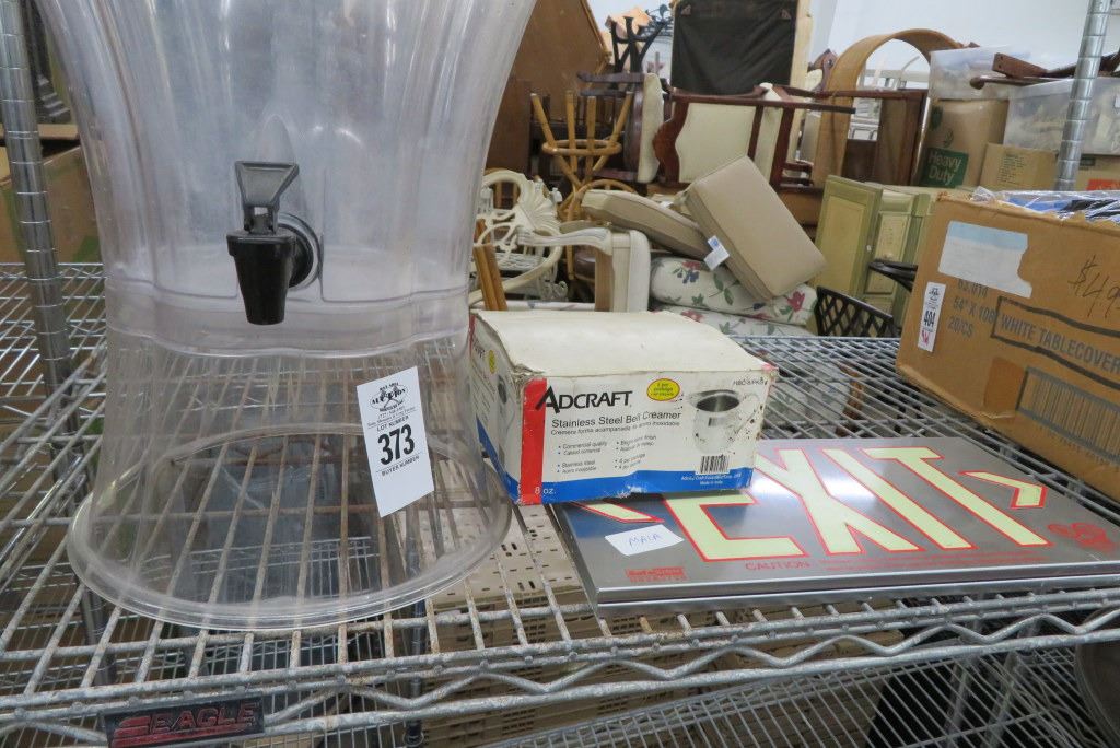 Plexi Beverage Dispenser, S/S Bell Creamer, Exit Signs