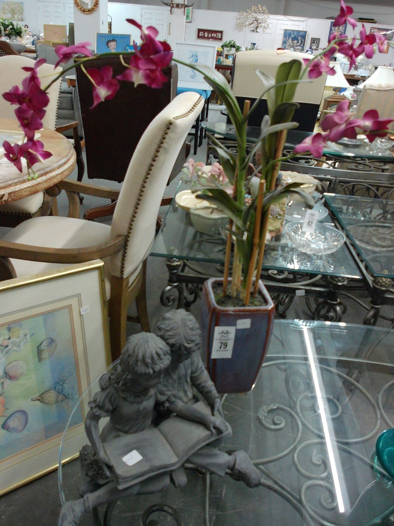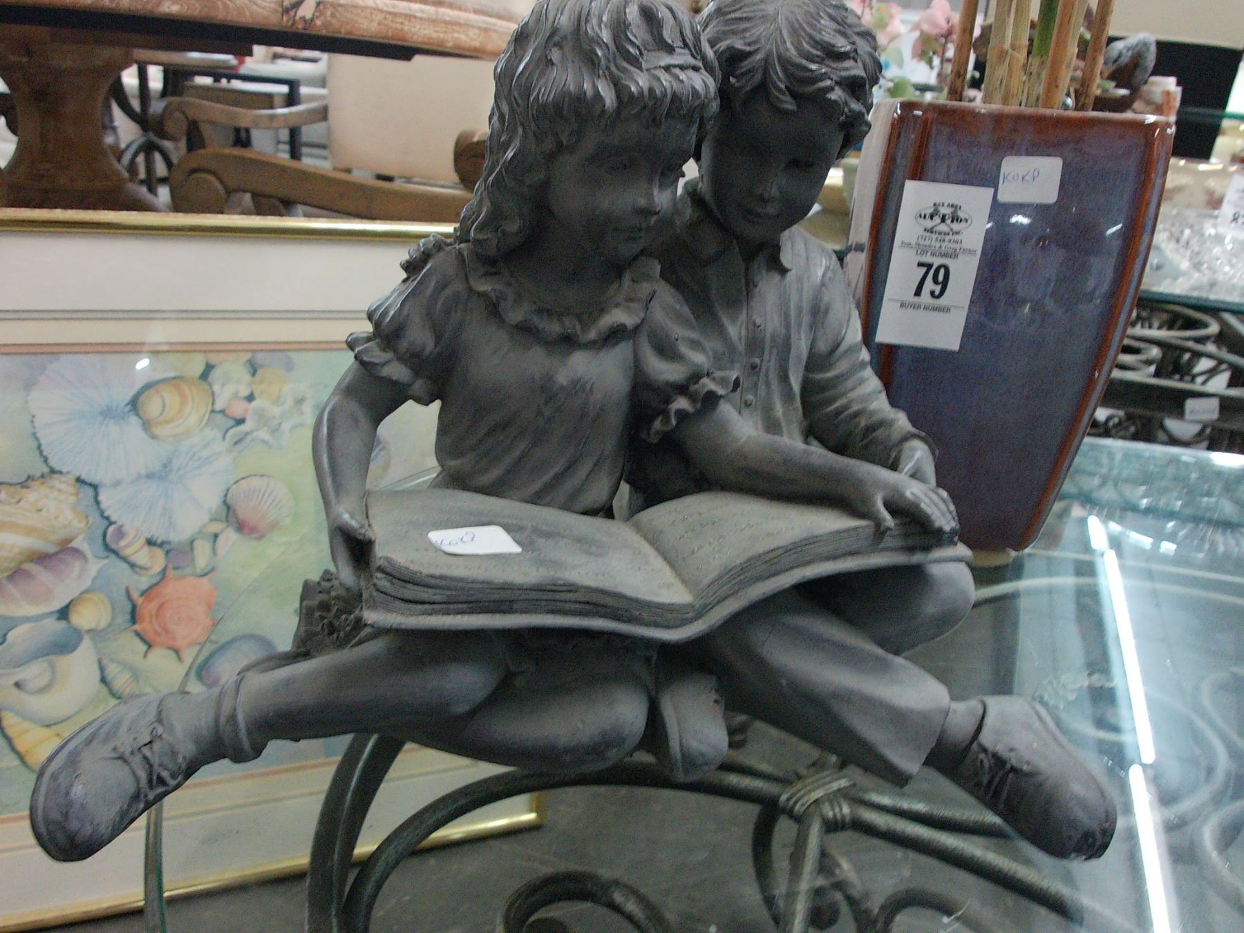 Potted Silk Floral, Plastic Statuary Kids Reading