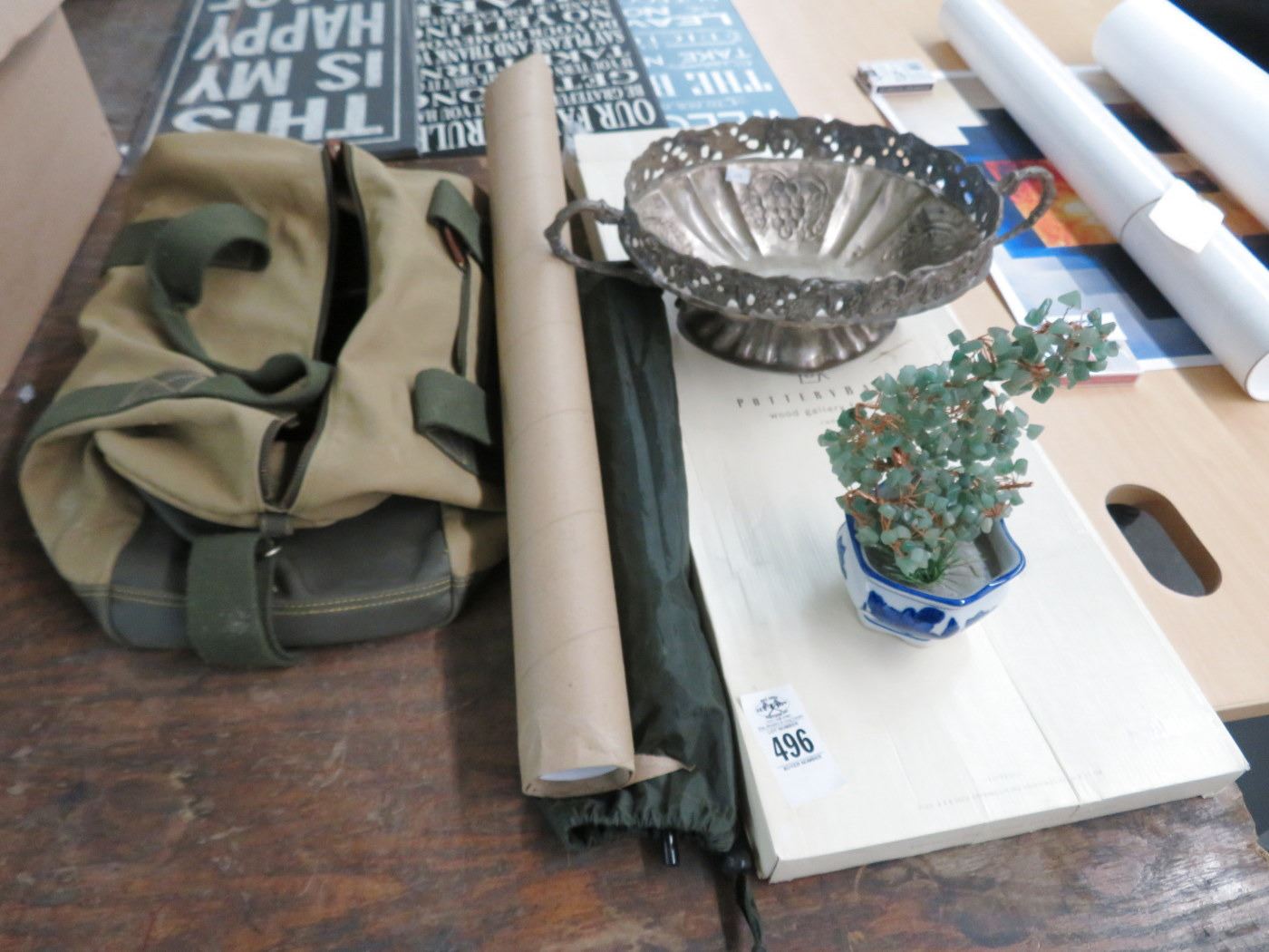 Pottery Barn Gallery Frame, Poster, Duffel Bag and Metal Bowl