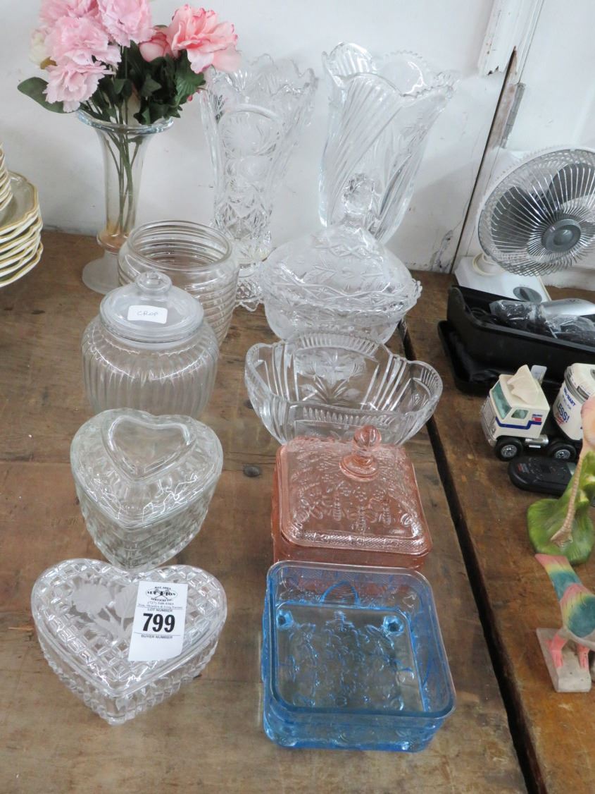 Pressed Glass, Crystal Vases, Compote, Lidded Bins