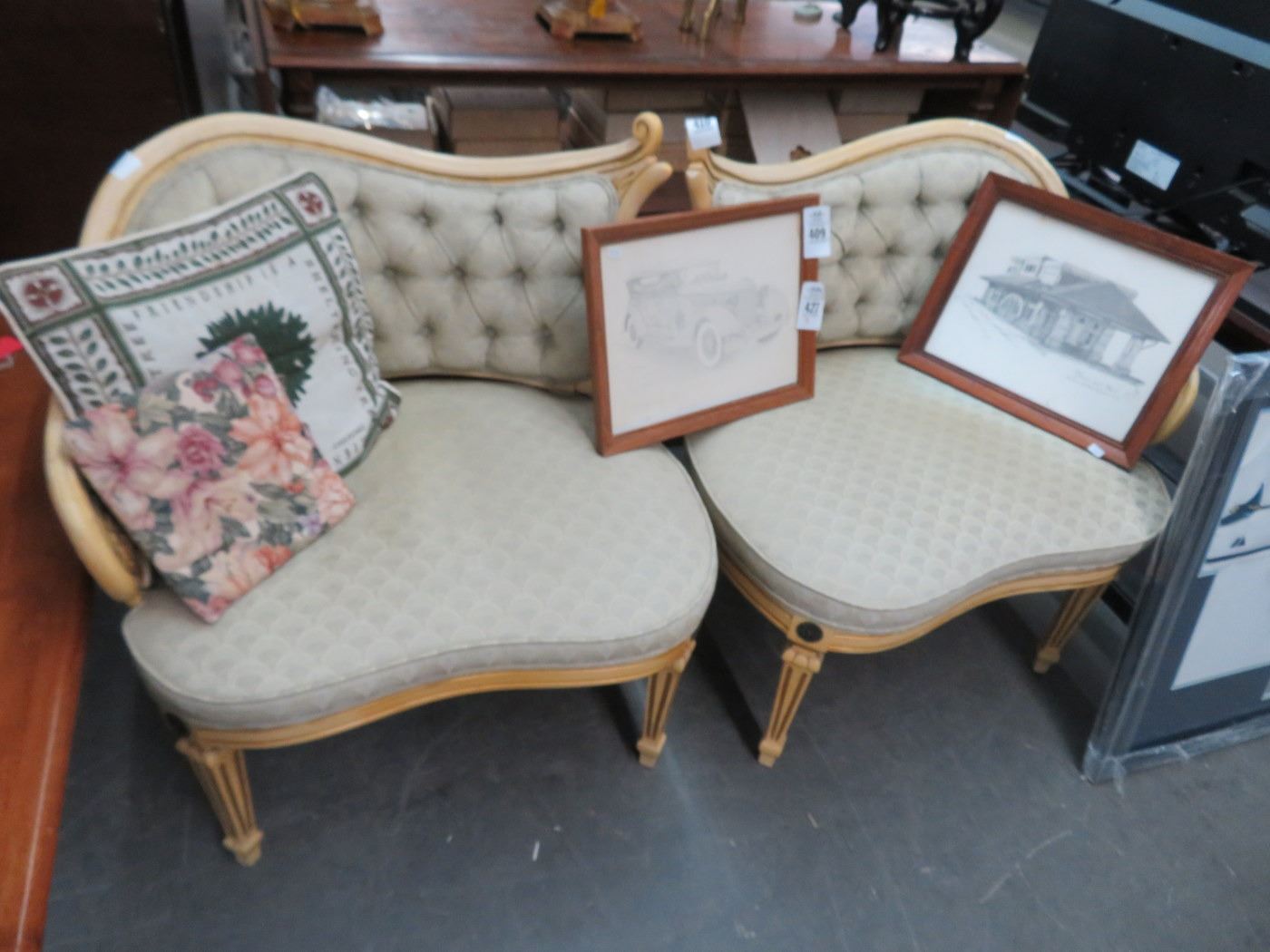 Provincial Tufted Corner Chairs - Pair