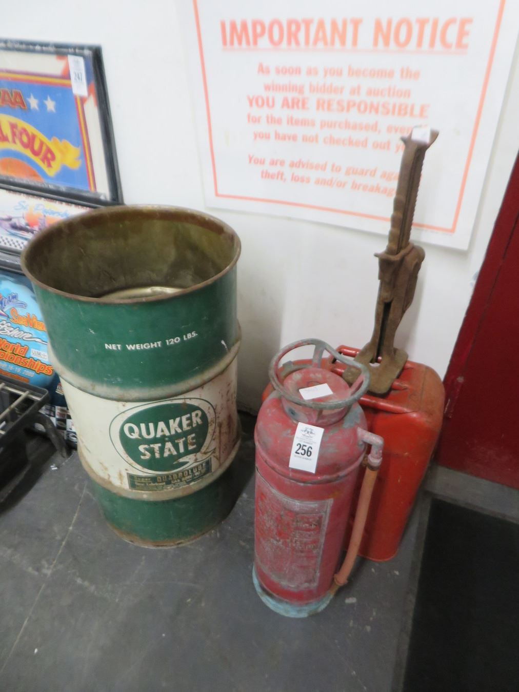 Quaker State Drum, Vintage Fire Extinguisher, Jack & Gas Can