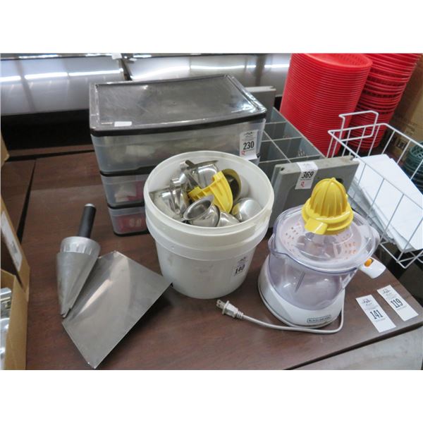 Juicer, Creamers, Utensils Bins, Storage Bins w/Condiments