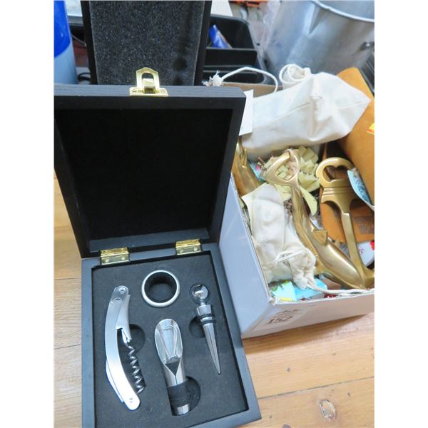 Wine Bottle Cork Screw Kits, Asst. Bottle Openers, and Décor Items