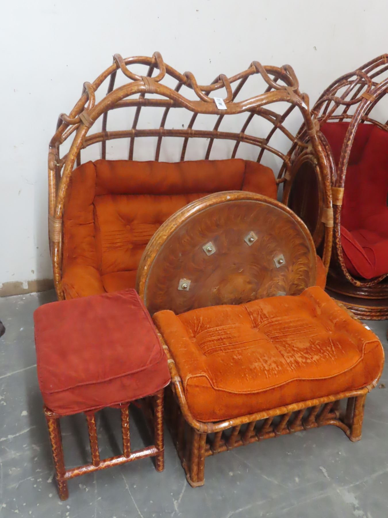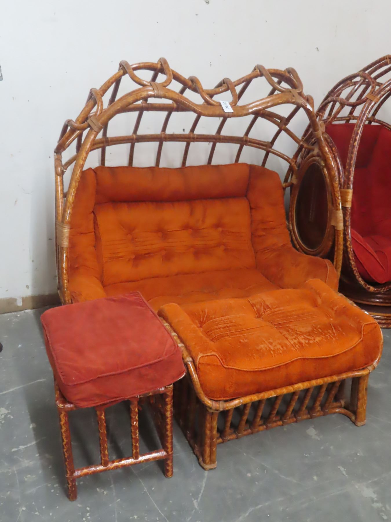 Rattan Bamboo Swivel Loveseat w/Footrest