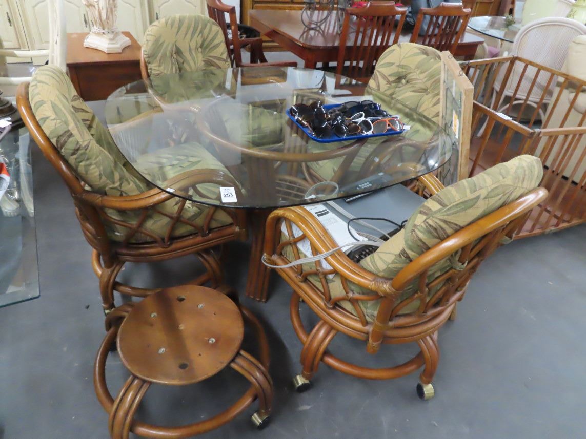 Rattan Glasstop Table w/4 Chairs & Stand