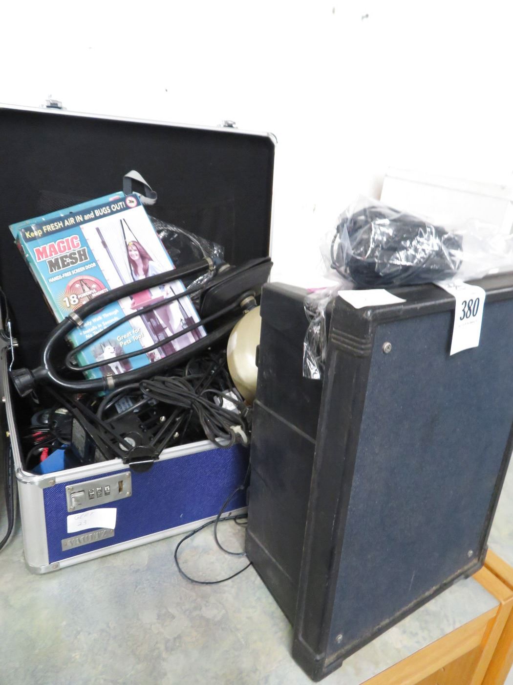 Realistic FM Guitar Amp, Outboard Motor Plunger, Bell and Briefcase