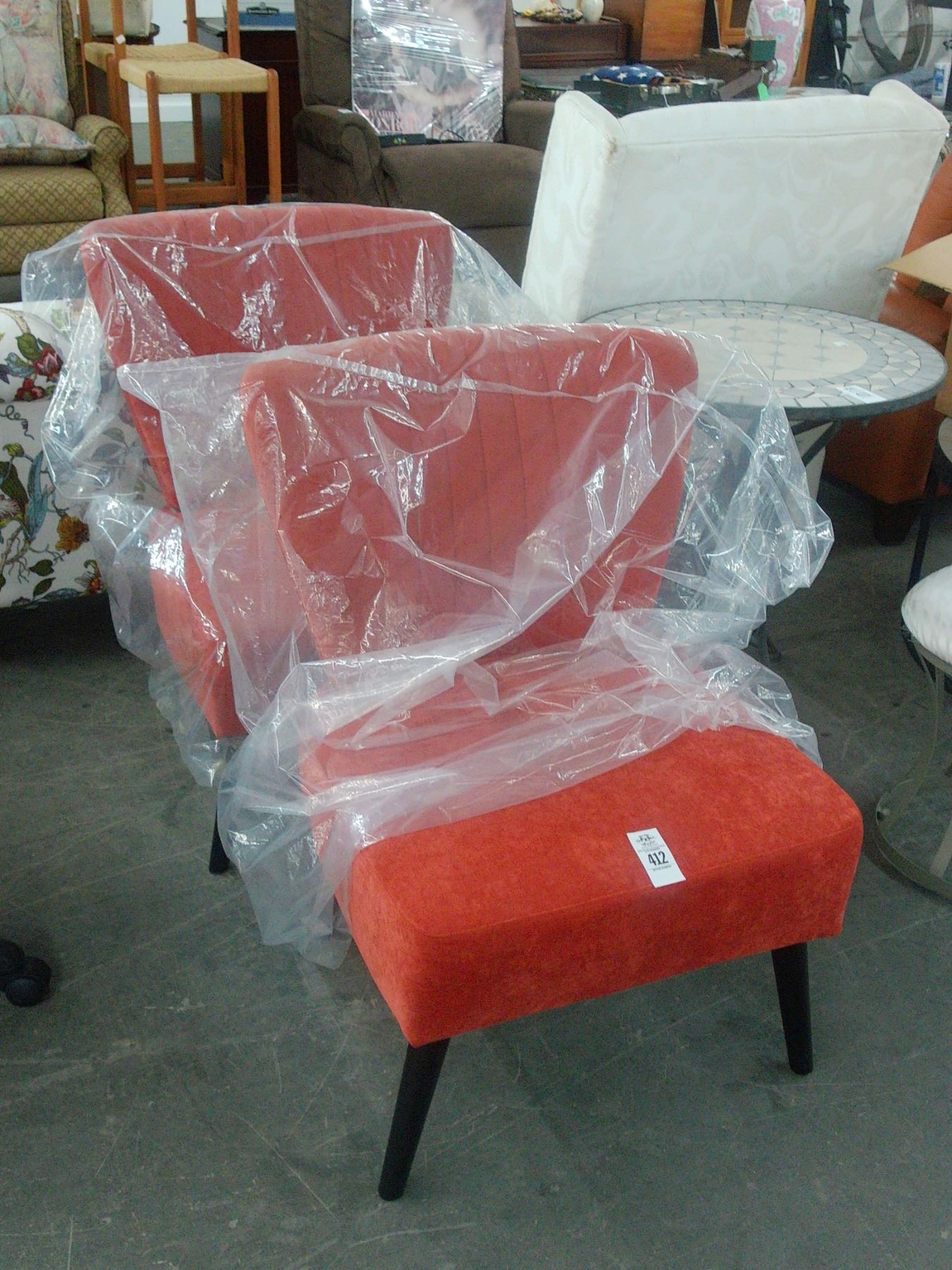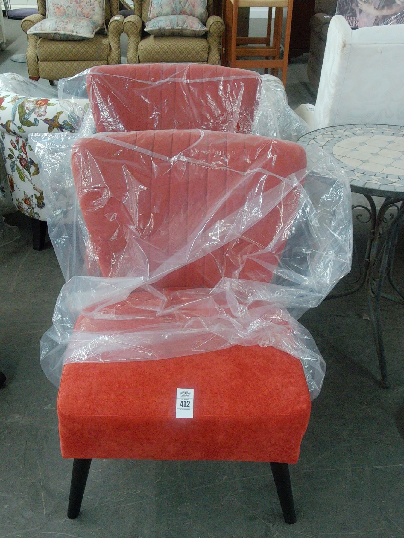Red Cloth Designer Chairs - Pair