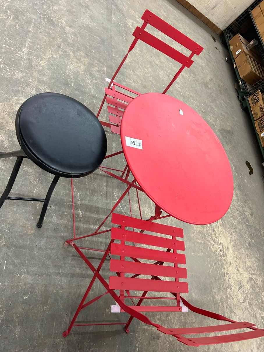 Red Folding 2 Top Bistro Table w/2 Chairs/Black Stool
