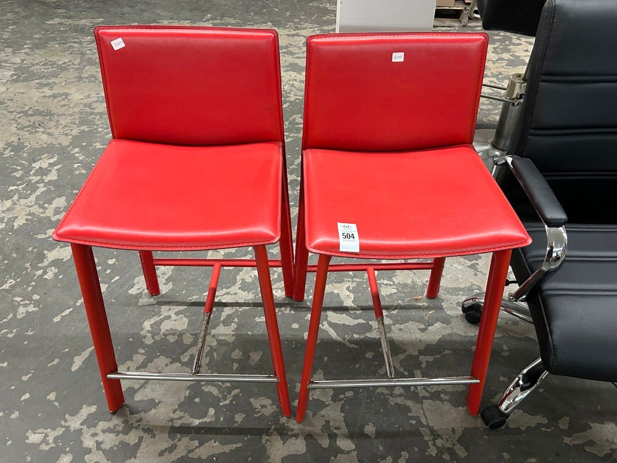 Red Leather Short Stools - Pair