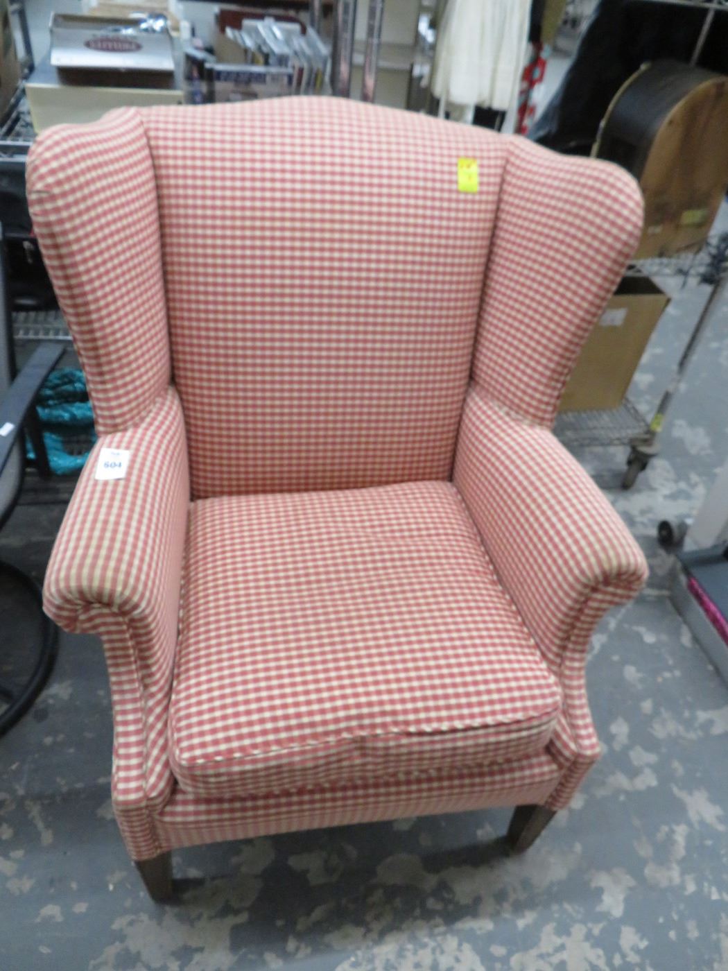 Red Plaid Cloth Wingback Chair and Patio Chair