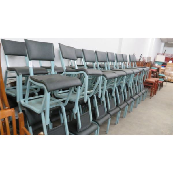 55-Blue Metal Black Padded '63 Military Chairs - 55 X $