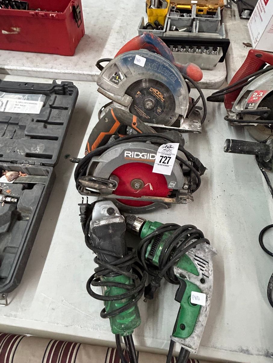 Ridgid Circular Saw, Hitachi Electric Grinder, Drill