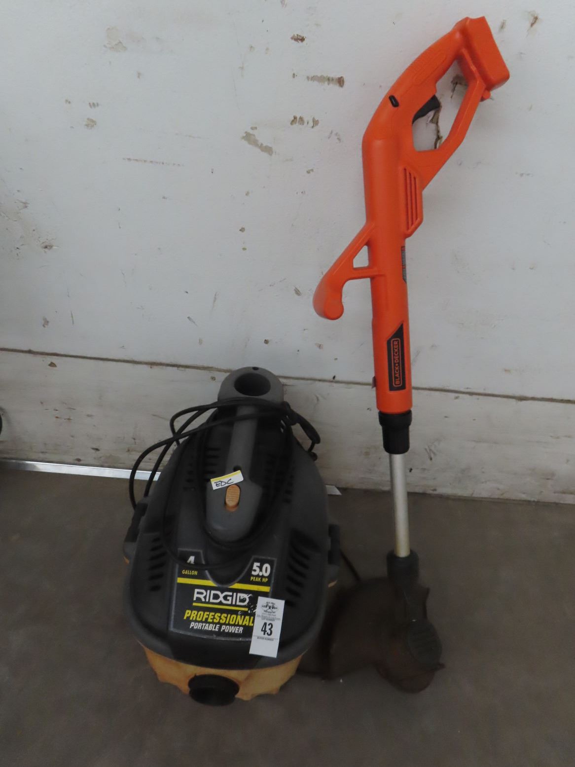 Ridgid Shop Vac, B & D Cordless Trimmer - No Battery/Charger