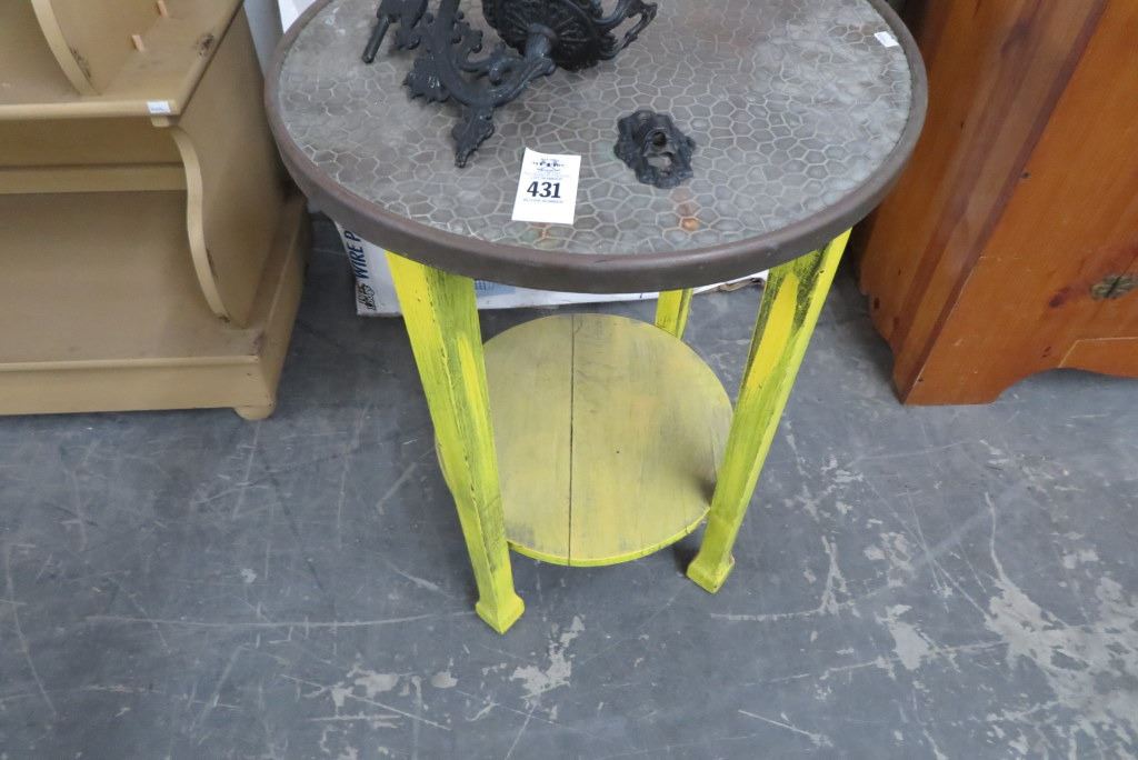 Round Mixed Metal Top Distressed Side Table