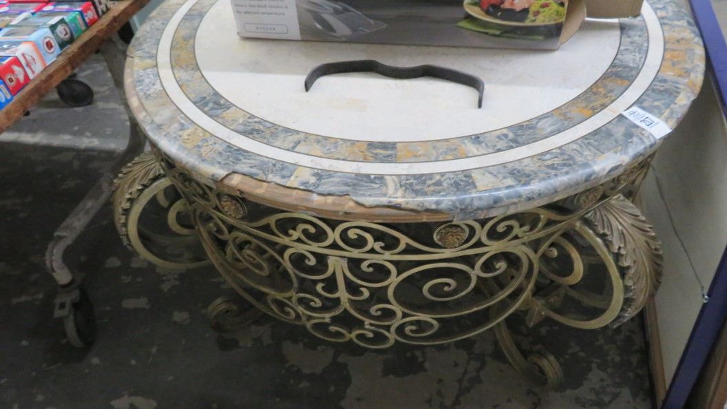 Round Ornate Metal Base Table (Damaged)
